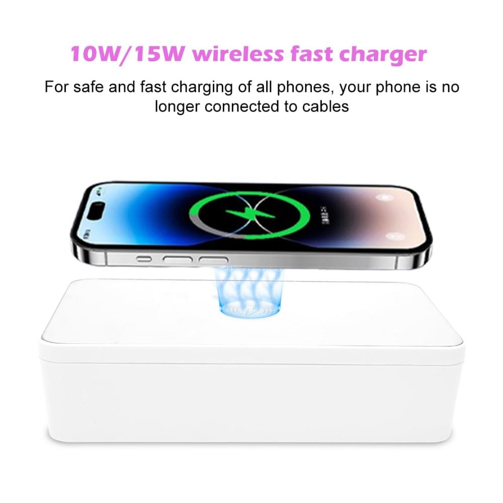 UV Handy DesinfektionsgeräT,Kabellose Wiederaufladbare Desinfektionsbox-Uv Reiniger mit QI Induktionsladestation für Alle Arten Von Handys,Brillen,Schmuck und Masken