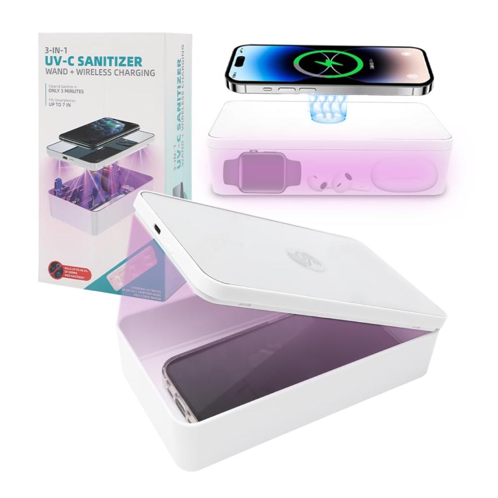 REINIGEN SIE ALLES IN IHREM GERÄT – Mit unserem UV-Sterilisator können Sie nicht nur Ihr Telefon sterilisieren, sondern auch alles im Inneren Ihres Geräts reinigen. Smartwatches, Kopfhörer, Kreditkarten und mehr.