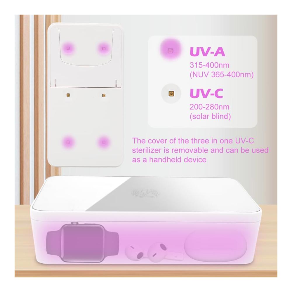 UV SANITÄTER – Dieser UV-Sterilisator verwendet ungiftige und geruchlose UV-Lampen, um versteckte Mikroben zu töten, sicher und gesund, mit einer 99,99%igen Bakterienabtötungsrate.