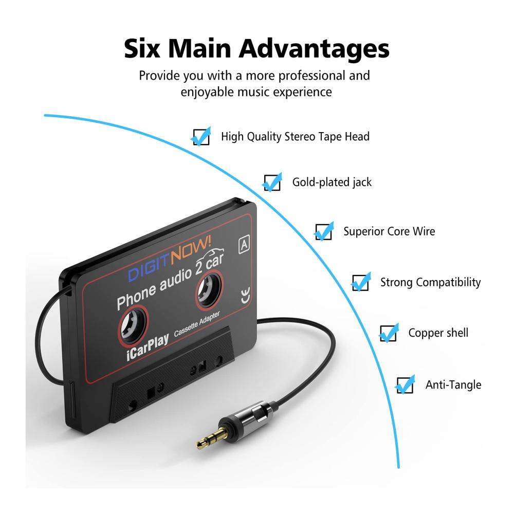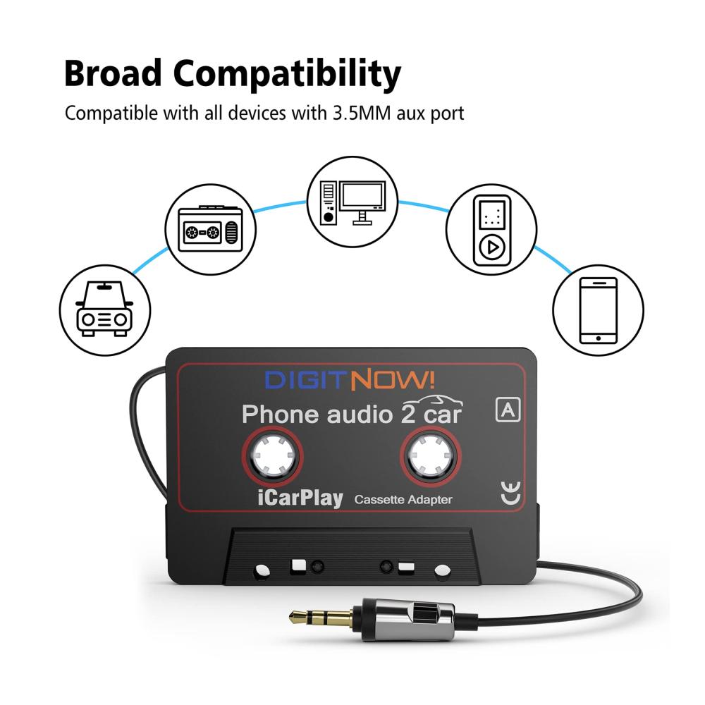 Erleben Sie mit dem Car Cassette Adapter von DIGITNOW! Musikgenuss in Ihrem Auto auf einem neuen Level. Spielen Sie Musik von Ihrem iPod, Smartphone oder Tablet über das Kassettendeck ab und genießen Sie hochwertigen, klaren Klang. Dank der 3.5mm Audiosteckfassung ist eine einfache Verbindung möglich, ohne dass eine externe Stromversorgung erforderlich ist. Dieser Adapter ist schnell und einfach zu bedienen und bietet Ihnen ein ultimatives Klangerlebnis unterwegs.