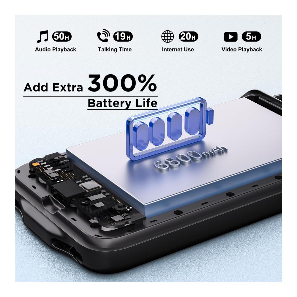 [Upgrade-Kapazität] – Die Upgrade-Kapazität von 6800mAh bietet Ihnen mehr als 200% Leistung für Ihr iPhone, d.h. Sie erhalten zusätzliche 50 Stunden Audiozeit, 19 Stunden Gesprächszeit, 20 Stunden Internetnutzung und 5 Stunden Spielzeit, so dass Sie sich keine Sorgen machen müssen, dass Ihnen der Strom ausgeht.