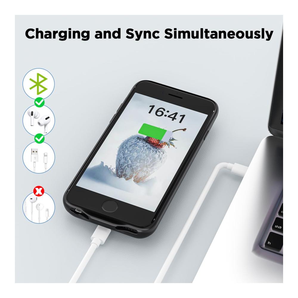 [Sync-Through-Technologie] – Einzigartige Sync-Through-Technologie ermöglicht es Ihnen, Ihr Telefon zu synchronisieren, ohne die Ladehülle zu entfernen, und es kann auch gleichzeitig aufgeladen werden. 100% kompatibel mit allen IOS-Versionen, Apple Pay und zukünftigen IOS-Software-Updates (Apple Car Play wird nicht unterstützt).