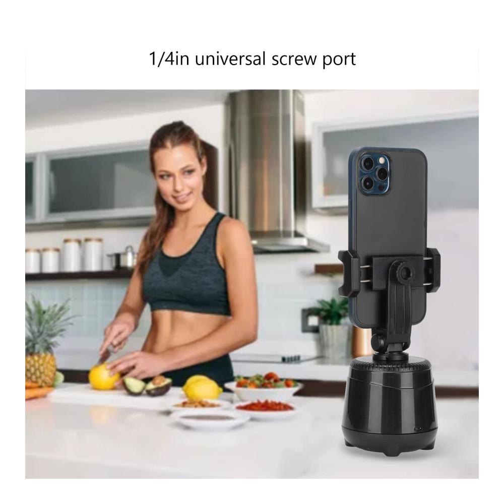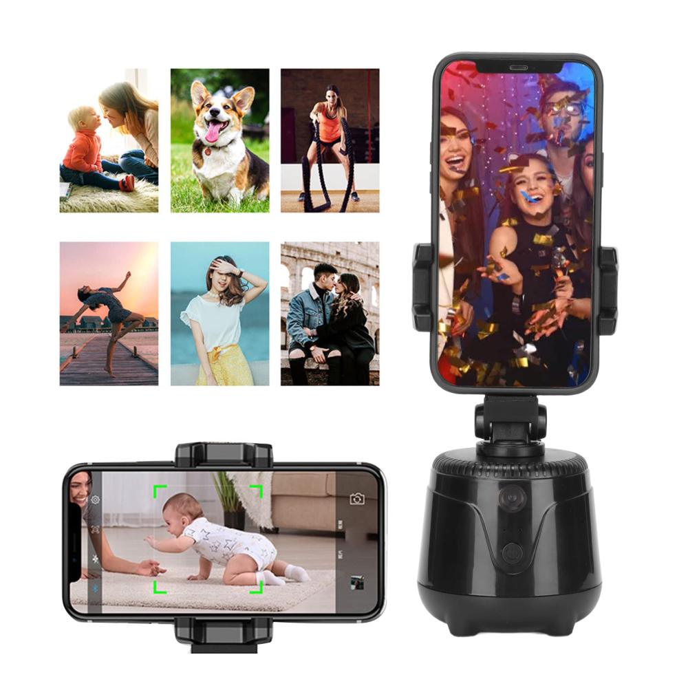 EINSTELLBARER WINKEL: Dieser 360-Grad-Selfie-Ständer ist mit einem Telefonclip ausgestattet, der horizontal um 360 Grad und vertikal um 37 Grad eingestellt werden kann. So kann es die Bewegung Ihres Gesichts und Körpers leicht erkennen.