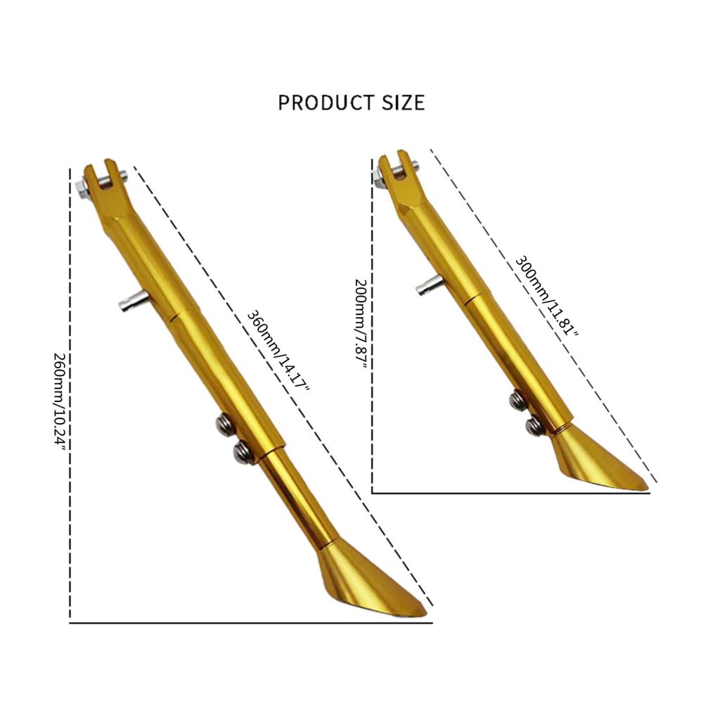 Verbesserter Ständer, universeller Seitenständer aus Aluminiumlegierung, verstellbarer Ständer, Fuß Seitenständer, schnelle Befestigung, SeitenständerMerkmale:Schützen Sie Ihr mit unserem Seitenständer, der abgenutzte Seitenständer ersetzt und verhindert, dass Ihr Fahrrad bei Wind umfällt.Unser aus Aluminium mit eloxierter Oberfläche gefertigter Ständer ist langlebig und einfach zu installieren, ohne dass zusätzliche Teile erforderlich sind.Dieses Produkt ist perfekt für Motorradbegeisterte, die die Sicherheitsfunktionen ihres Motorrads verbessern möchten.Egal, Sie unwegsames Gelände erkunden oder auf der Autobahn unterwegs sind, unser Seitenständer bietet zuverlässigen Halt für Ihr Fahrrad.Lassen Sie nicht zu, dass ein abgenutzter Seitenständer Ihre Fahrt ruiniert – rüsten Sie noch heute auf unseren hochwertigen Seitenständer und genießen Sie ein sichereres Motorraderlebnis.Spezifikationen:Material: AluminiumlegierungLänge: 30 cmFarbe: 6 Farben zur AuswahlPaket beinhaltet:1xMotorradständerNotiz:Bitte erlauben Sie 1 bis 3 cm Fehler aufgrund der manuellen Messung. Bitte stellen Sie sicher, dass Ihnen nichts ausmacht, bevor Sie bieten.Aufgrund des Unterschieds zwischen verschiedenen Monitoren spiegelt Bild möglicherweise nicht die tatsächliche Farbe des Artikels wider.