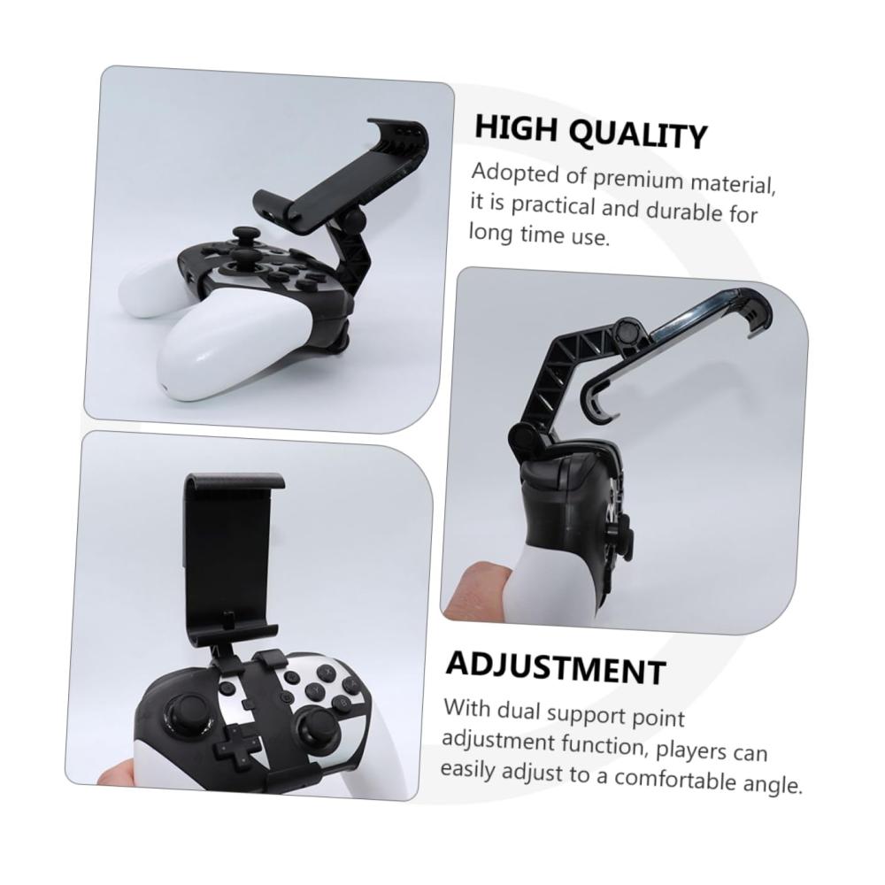 Verbessern Sie Ihr Gaming-Erlebnis mit dem 5St Halterung Gamepad-Rack Ständer für Spielkonsolen! Dieser Schwarz-Spielständer für Spielekonsole ermöglicht die Verwendung des Gamecontrollers zum Spielen der Spielekonsole beim Gehen mit der Gamepad-Halterung. Platzieren Sie die Spielekonsole auf dem Griff und lassen Sie Ihre Hände frei, damit Sie den Griff zum Spielen im Dock-Modus-Gamepad-Rack verwenden können. Die Klemme für Gamepad wird direkt über dem Griff platziert, um Ermüdungserscheinungen am Handgelenk zu vermeiden. Die obere Spielekonsolenhalterung ist kompatibel mit Switch Pro/Lite-Gaming-Zubehör. Mit der Dual-Stützpunkt-Einstellfunktion können Spieler einfach einen bequemen Winkel des Gamepad-Ständers einstellen.