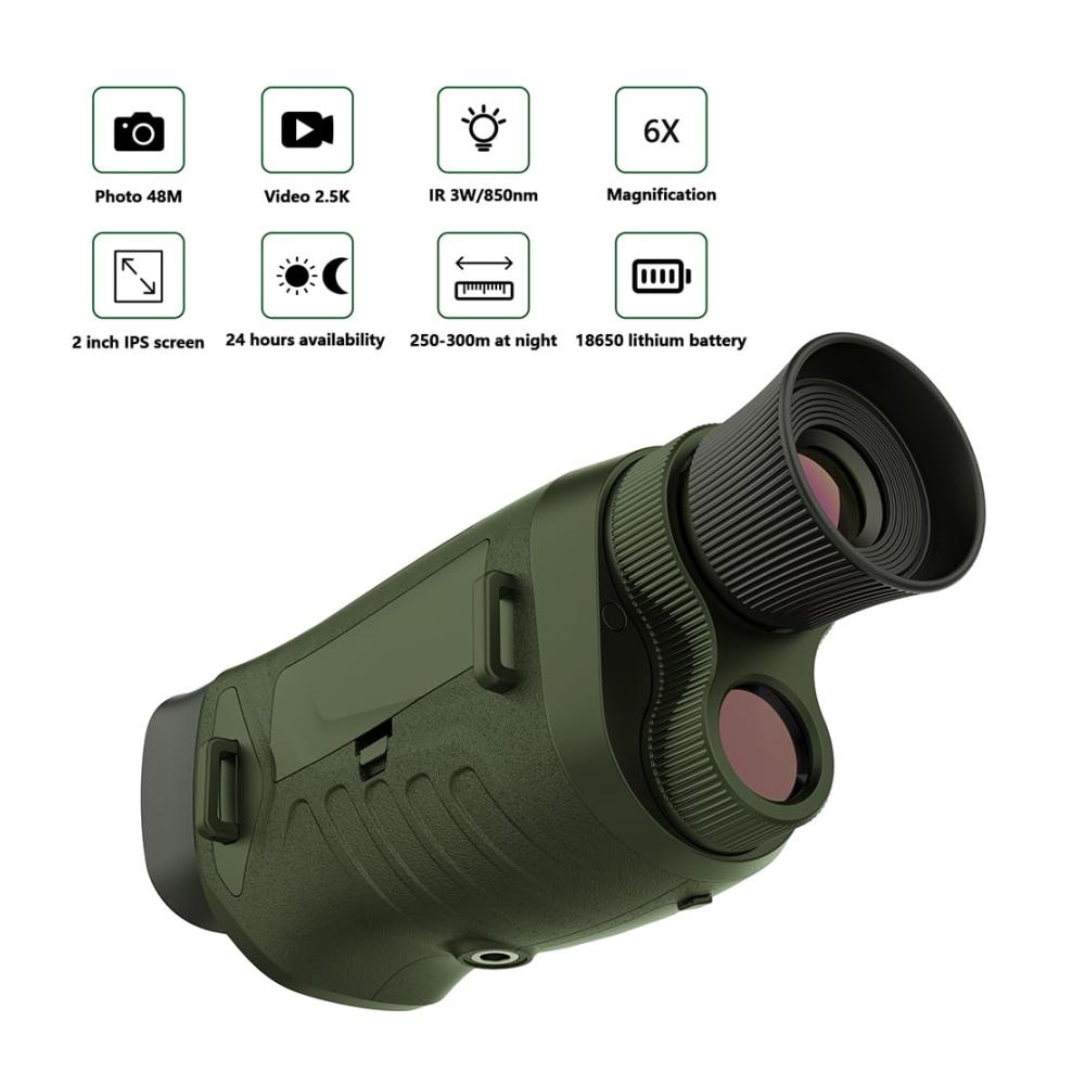 Erleben Sie die Leistungsfähigkeit der Monokularen Nachtsicht von Yanshe! Mit einem digitalen Zoom von 8x und einer optischen Verstärkung von 6x bietet dieses Gerät eine effektive visuelle Entfernung von 200–300 m. Erfassen Sie gestochen scharfe Bilder mit einer Auflösung von bis zu 48 MP und Videos in 2,5 K-Qualität. Die robuste TPU-Konstruktion und die mitgelieferte Aufbewahrungstasche machen es ideal für den Einsatz beim Camping und bei der Jagd. Ein unverzichtbares Werkzeug für Nachtbeobachtungen!