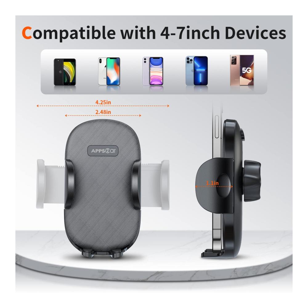 【AUTO HANDYHALTERUNG PRODUKTGRÖßE】: Die Länge des Clips ist 2.36inch, wenn geschlossen und 4.3inch, wenn geöffnet, der Abstand von der unteren Halterung bis zur Oberseite ist 4.3inch, geeignet für Smartphones von 4-6.8inch; die Armlänge des Clips ist 0.75inch, so dass die Dicke Ihres Telefons weniger als oder gleich 0.75inch sein sollte, um es zu halten. Der Schwanenhals Halterung ist 7inch lang und kann für kleinere Autos wie der Cooper Mini verwendet werden.