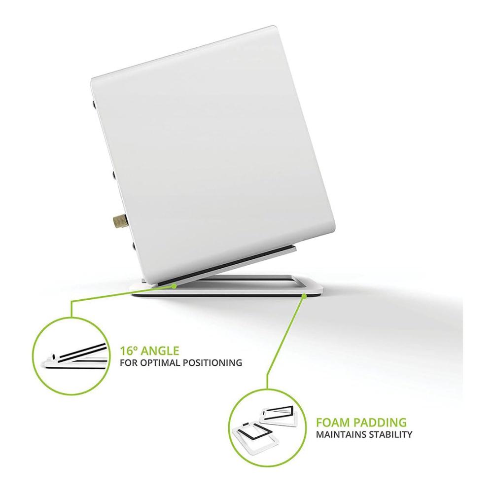 Erleben Sie Klang in seiner reinsten Form mit unserem Paar geneigter Desktop-Lautsprecherständer für kleine Lautsprecher und Studio-Monitore in stilvollem Weiß. Mit einer vertikalen Neigung von 16° bringen diese Ständer Ihre Lautsprecher in die optimale Position, um die volle Frequenzbandbreite zu genießen. Die sorgfältig platzierte Schaumstoffpolsterung gewährleistet nicht nur Stabilität, sondern reduziert auch unerwünschte Vibrationen. Das minimalistische Design fügt sich nahtlos in jeden Arbeitsbereich ein, während die solide Metallkonstruktion Langlebigkeit und Stil bietet. Tauchen Sie ein in eine Welt des verbesserten Klangs und setzen Sie Ihre Lautsprecher mit unseren Ständern perfekt in Szene.
