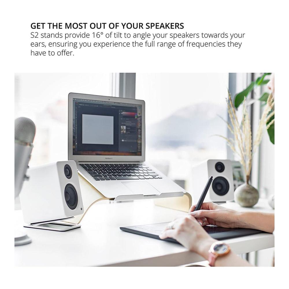 VERBESSERTER KLANG – Erhöhen Sie Ihr Lautsprechersystem mit Desktop-Lautsprecherständern. Mit 16 Grad fester vertikaler Neigung, Schaumstoffpolsterung und handgefertigtem pulverbeschichtetem Stahl reduziert jeder Lautsprecherständer Oberflächenvibrationen für eine stabile Isolierung, wenn Sie die Musik aufdrehen.