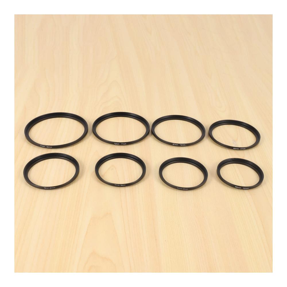 Das 8 Stück Aufwärts Adapter Ring Set ist ein unverzichtbares Zubehör für jeden Fotografen oder Videografen, der seine Möglichkeiten erweitern möchte. Die Adapterringe ermöglichen es, Filter oder Zubehör mit größerem Durchmesser an einem Objektiv mit kleinerem Filtergewinde anzubringen.