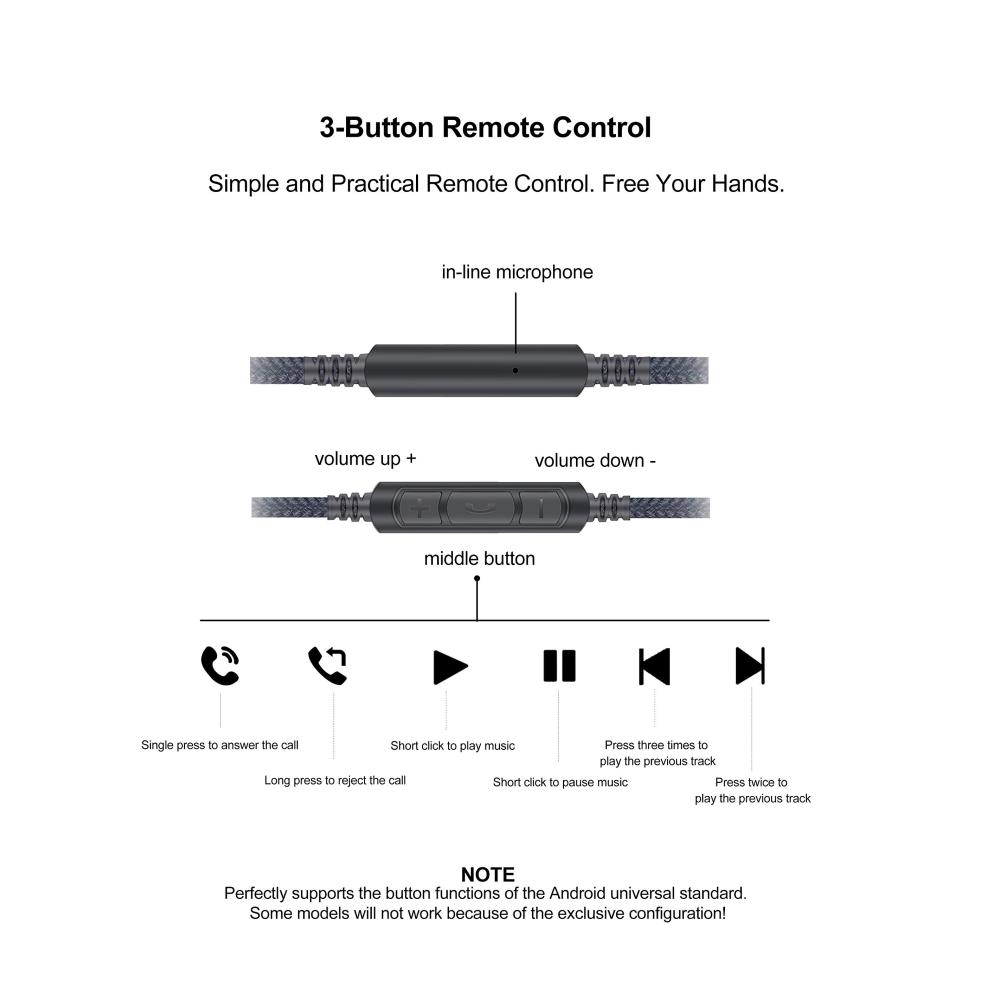 Tolle Fernbedienung – 3 Tasten unterstützen Lautstärkeregler, Titel überspringen und Anrufe annehmen usw. Befreien Sie Ihre Hände jederzeit und überall. (Funktioniert nur gut mit Android Phone).