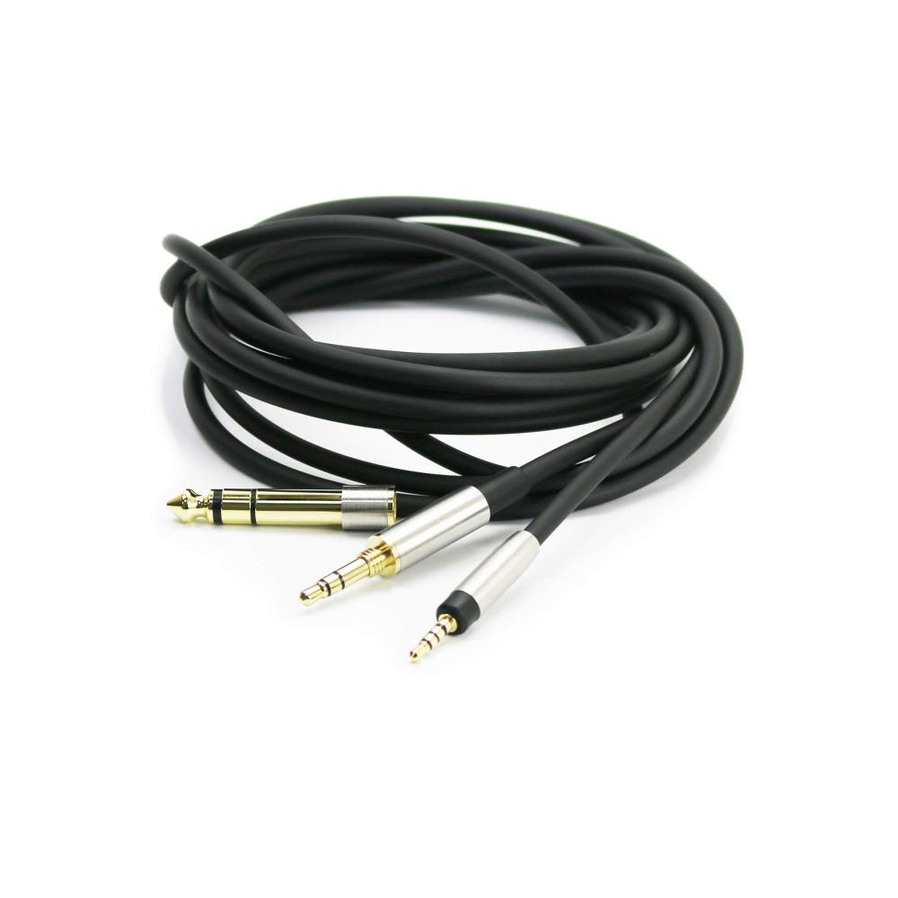 Länge: 6 m, Anschluss: 3,5 mm Stecker und 6,35 mm Adapter auf 2,5 mm Stecker.