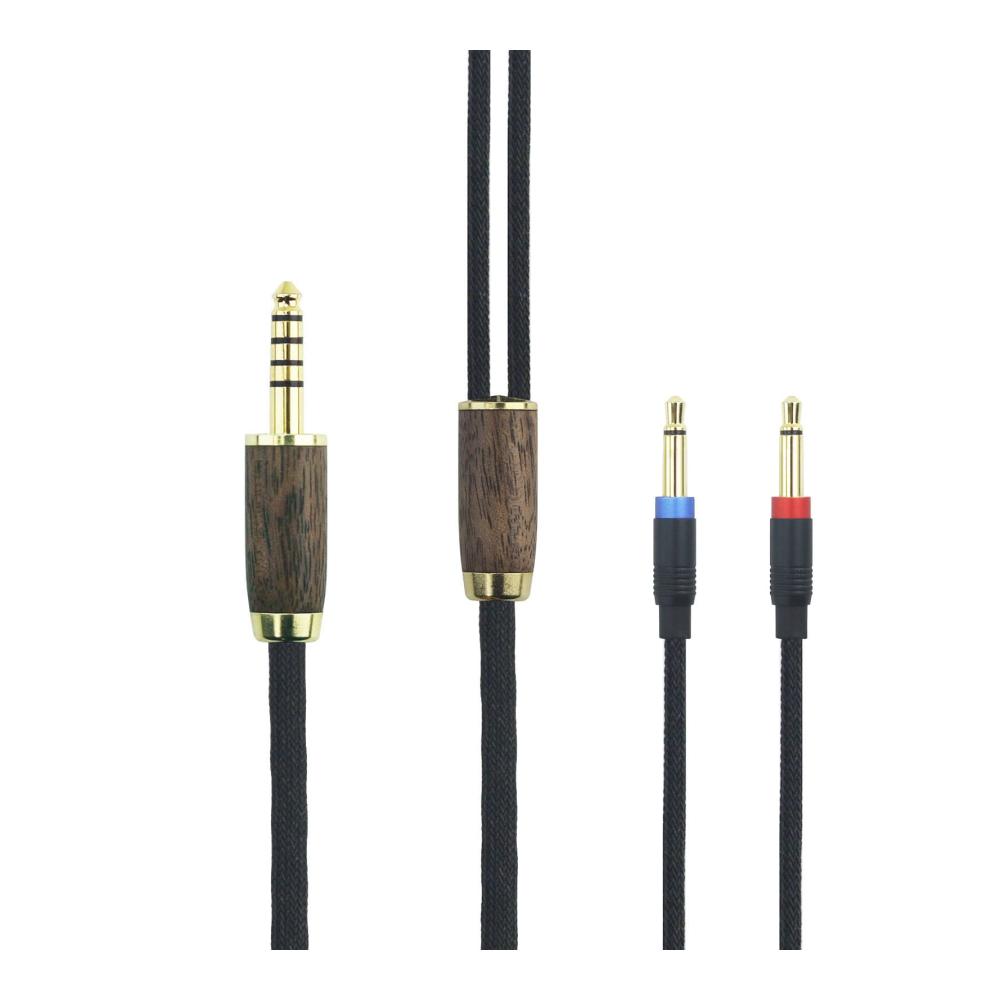Anschluss: 4,4 mm symmetrischer Stecker auf zwei 3,5 mm Stecker; Die Steckerschale besteht aus Walnussholz / Massivholz – Walnuss Messing vergoldet