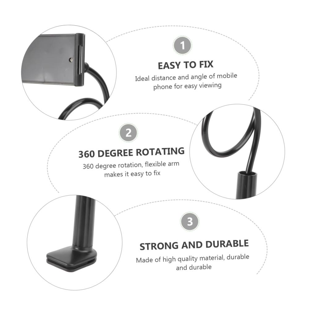 Paketliste 1 x universeller Handyhalter Lazy Bracket Handyständer flexibler Schwanenhals-Langarmclip für Smartphone- oder Tablet-Geräte (schwarz)Eigenschaften – Material: Kunststoff und Silikon flexibler Handyhalter.– Farbe: schwarzer Handyhalter.– Größe: 75 x 14 x 3 cm.– gilt für Wohnzimmer, Schlafzimmer, Küche, Büro, Bar, Café, Labor, Krankenhaus usw. Langarm-Handyhalterung.– passend für die meisten universellen Smartphones und Tablets unter 10,1 Zoll, universeller Handyhalter. Der um– 360 Grad drehbare, flexible Arm erleichtert die Fixierung des Telefons in der Entfernung und im Winkel für eine bequeme Betrachtung der Mobiltelefonhalterung.– Der stabile und biegsame Schwanenhalsarm schützt Ihr Smartphone vor Stürzen oder Bewegungen.Wareninformationen Handyhalter Der Schwanenhalsarm ist flexibel und formbar, während sich die Lazy-Halterung für das Gerät im Kreis dreht. Sie können sich einfach in Filme, E-Books, Rezepte und mehr vertiefen. Desktop-Handyhalter Der Artikel befreit Ihre Hände und reduziert die Belastung des Nackens. Mit der mobilen Halterung können Sie Ihr Smartphone am Bett, am Schreibtisch, in der Küche, im Büro usw. befestigen und aufstellen