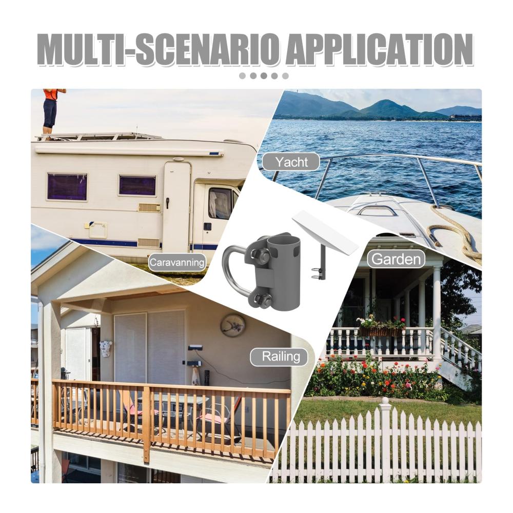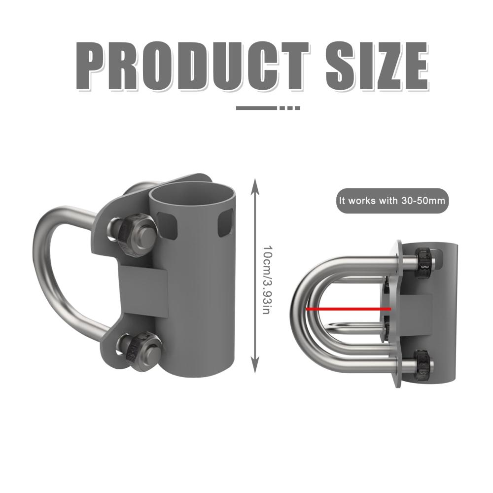 Rutschfest und stabil: Unser U-förmiger Antennenmast Rohrhalterung ist außerdem mit einer rutschfesten Silikonhülle ausgestattet. Führen Sie zuerst den Antennenstab in die U-förmige Basis ein, klemmen Sie dann die U-förmige Halterung an die Querstange oder Säule und ziehen Sie die Schrauben fest, um sie zu befestigen.