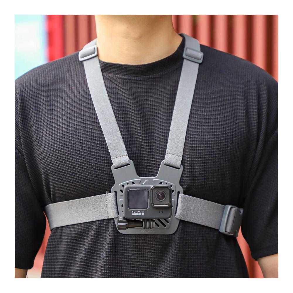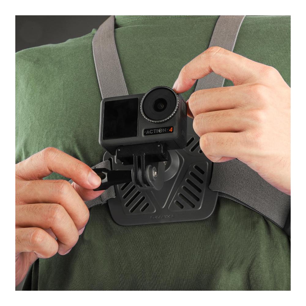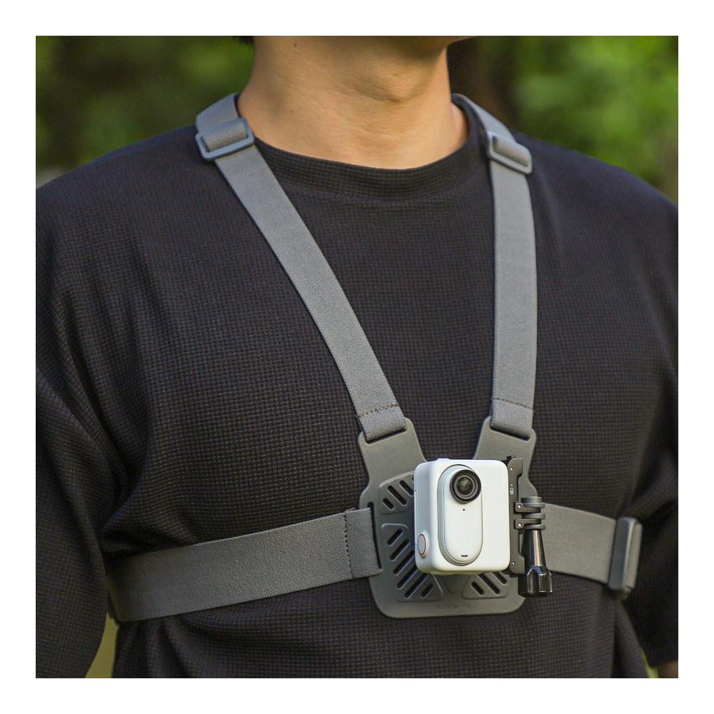 Entdecken Sie die Vielseitigkeit des verstellbaren Brustgurts für Sportkameras, kompatibel mit DJI Action/Pocket und Insta360 Go/One R/One X Serien. Einfache Befestigung ermöglicht POV-Aufnahmen für Outdoor-Aktivitäten wie Skifahren und Klettern.