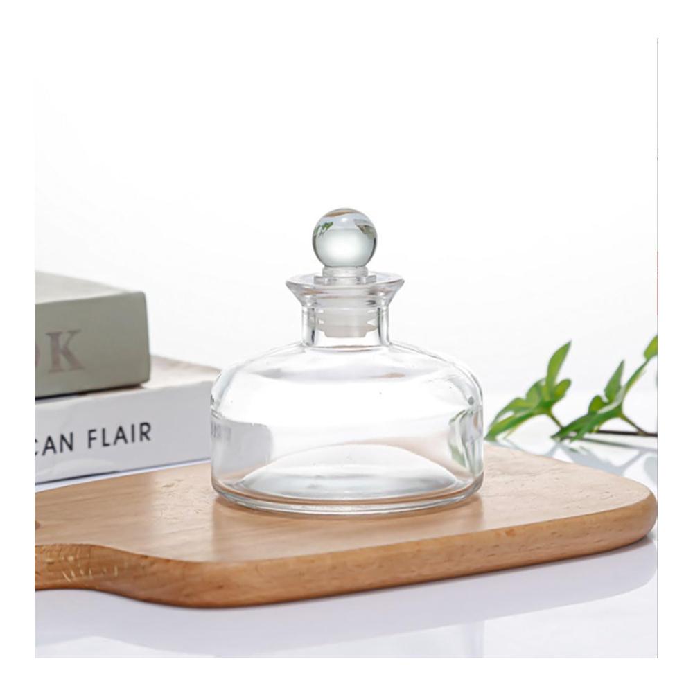 Die runde Aromatherapie-Diffusorflasche besteht aus Gl Material. Es ist langlebig, robust, genug Kapazität und wiederverwendbar.