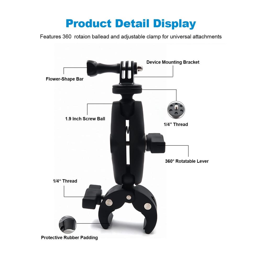 【Perfektes Kit】: Das Autohalterungs-Combo-Kit enthält 1 Fahrradhalterung, 1 Superklemme, 1 Gerätehalter, 1 Außengewinde und 1 Klemmkugeladapter. Hochwertige Kombination, sparsamer, praktischer und bequemer.
