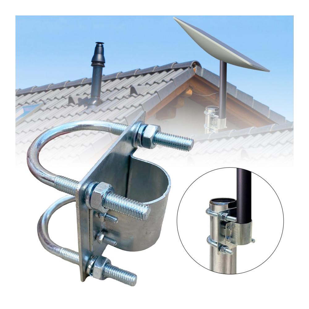 Spezifikationen: Material: verzinkter Stahl Farbe: Silber Montage: Mastmontage Antennenmastrohrhalterung und Fahnenmastadapter, Antennenmast-Montagehalterungs-Set, funktioniert mit Starlink-Schüssel und Universalantenne, Stahlstangen-Klemmhalterung, Dachhalterung
