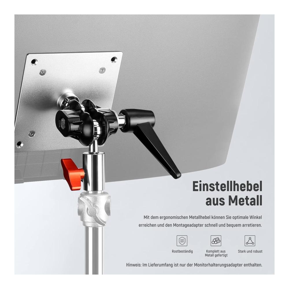 【Ergonomischer Metallgriff】 Mit dem langen Metallgriff können Sie optimale Winkel erzielen und den Montageadapter auch bei installiertem Monitor arretieren. Das robuste Aluminiumlegierungsmaterial bietet besseren Halt und Haltbarkeit und ist nicht leicht zu beschädigen, sodass es zahlreichen Anpassungen standhält und sich an unterschiedliche klimatische Umgebungen anpasst