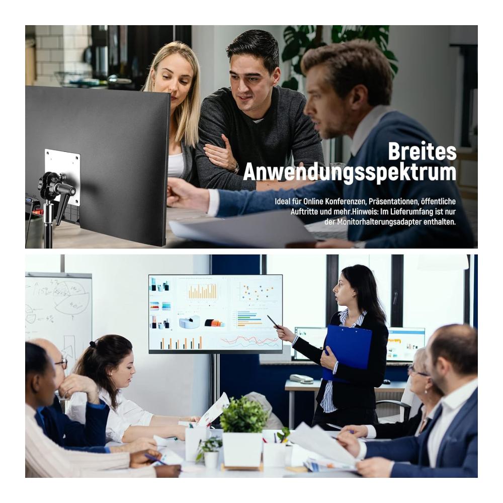 【Unterstützt Monitore/Panele mit einem Gewicht von bis zu 6,3kg.】 Dieser Monitorhalterungsadapter ist solide aus einer hochwertigen Aluminiumlegierung gefertigt und kann einen Monitor mit einem Gewicht von bis zu 6,3kg stabilisieren. Es ist ideal für die Montage von Monitoren, Displays oder Fernsehern unterschiedlicher Größe und kann für Besprechungen, Präsentationen, öffentliche Räume oder für Produktionsteams zum Ansehen von Referenzvideos oder Materialien verwendet werden