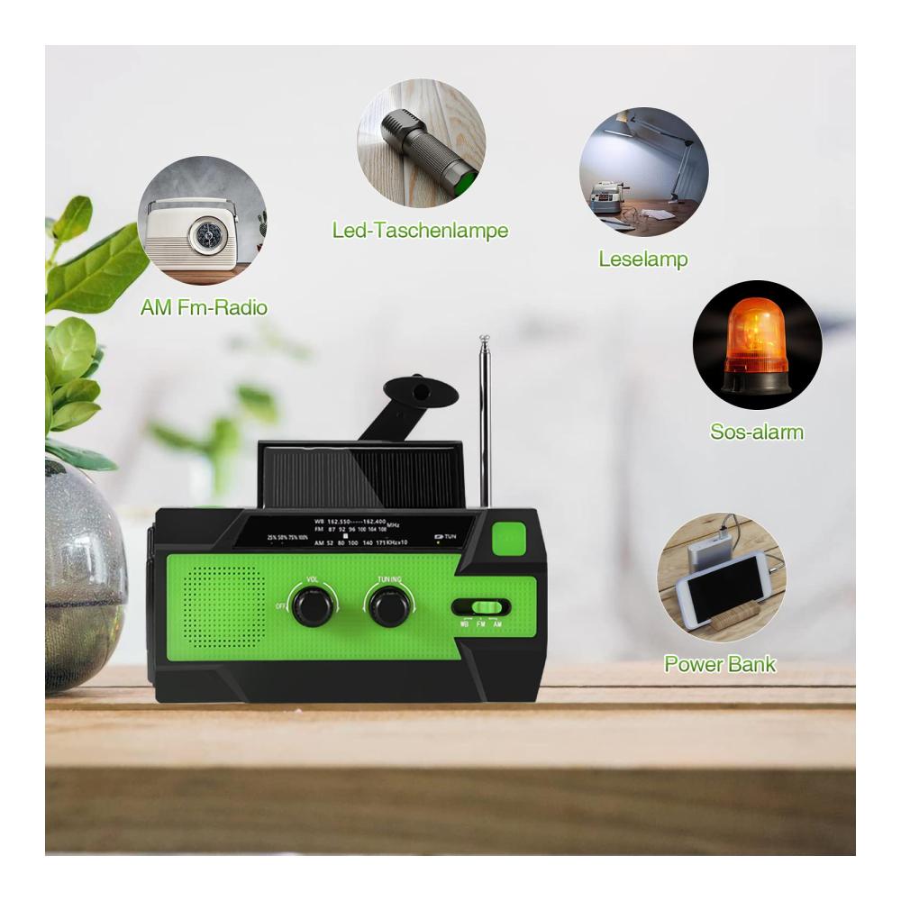 Erleben Sie das Tubiaz Kurbelradio Solar Radio, ein multifunktionales Notfallradio mit 4000mAh wiederaufladbarer Powerbank und LED-Taschenlampe. Dieses tragbare Radio ist perfekt für Outdoor-Aktivitäten wie Camping und Wandern geeignet. Es verfügt über einen lauten SOS-Alarm, ist leicht zu tragen und bietet verschiedene Lademöglichkeiten, darunter USB-Schnellladung und Solarpanel. Mit FM/AM-Radio, Leselichtfunktion und wasserdichtem Design ist dieses Radio ein unverzichtbarer Begleiter für Notsituationen und Abenteuer im Freien.