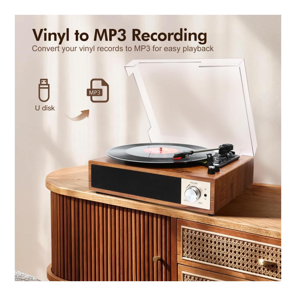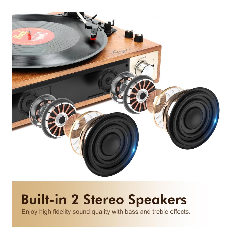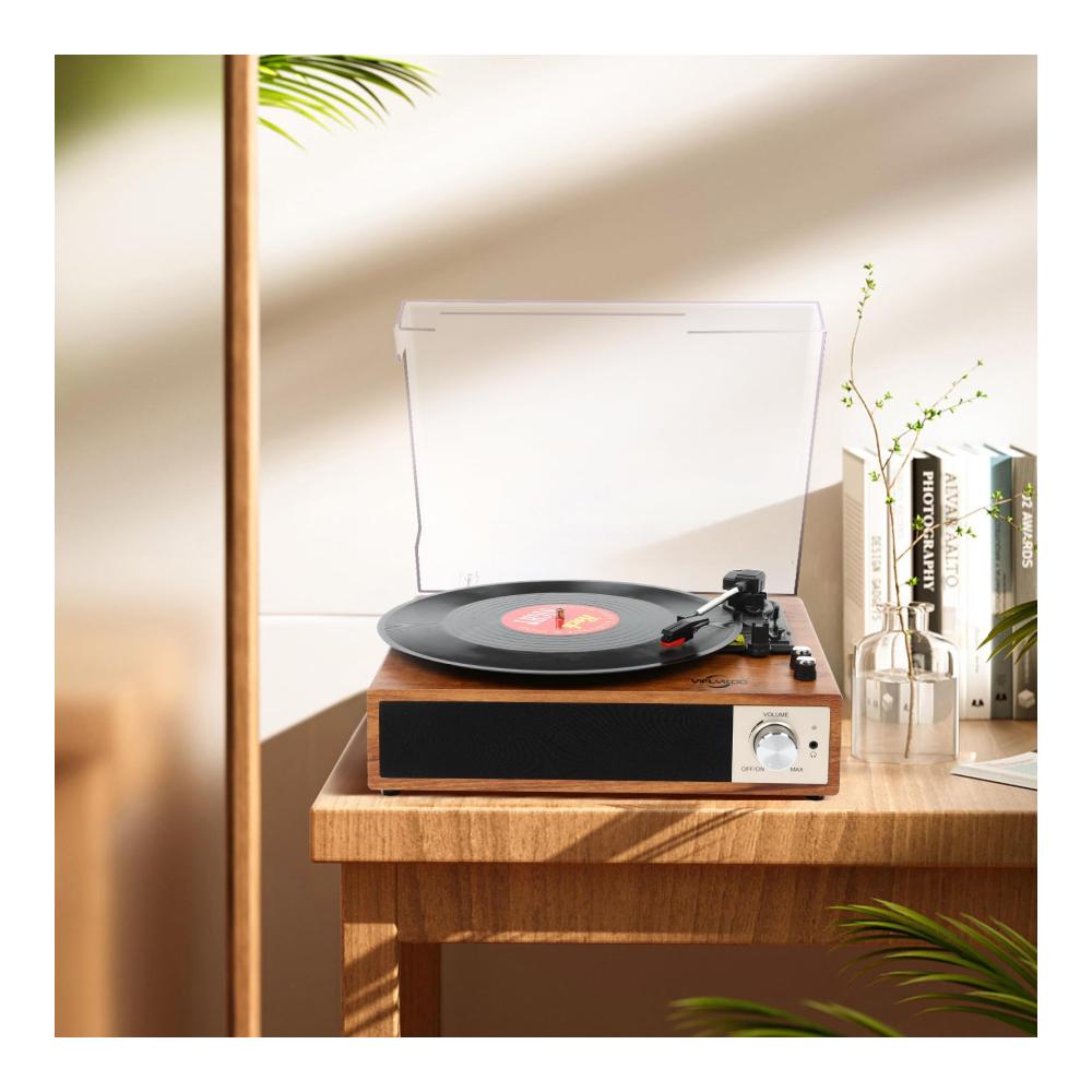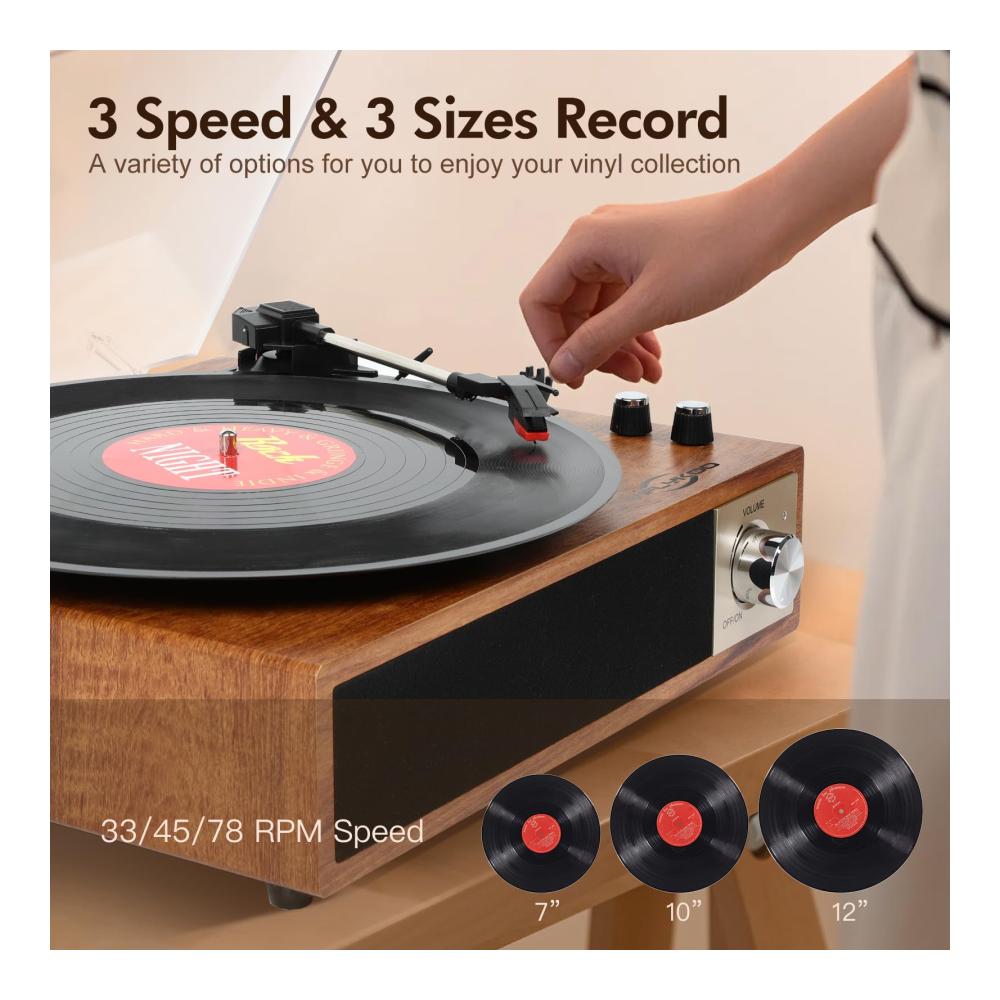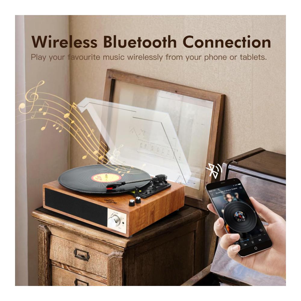 Erleben Sie mit unserem Plattenspieler die Wiederauferstehung der analogen Musik! Ausgestattet mit Bluetooth 5.0 für eine verbesserte Verbindung, 2 integrierten Stereolautsprechern und 3 Geschwindigkeiten (33/45/78 u/min) bietet dieser Schallplattenspieler ein authentisches Klangerlebnis. Das automatische Stoppsystem schützt Ihre Vinyls vor Verschleiß, während das Anti-Resonanz-Design und die Staubschutzhülle die Qualität bewahren. Ein perfektes Geschenk für Musikliebhaber und Nostalgiker!