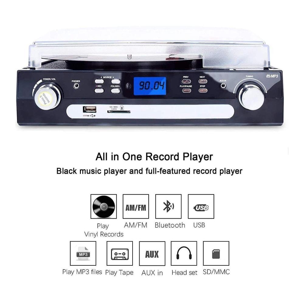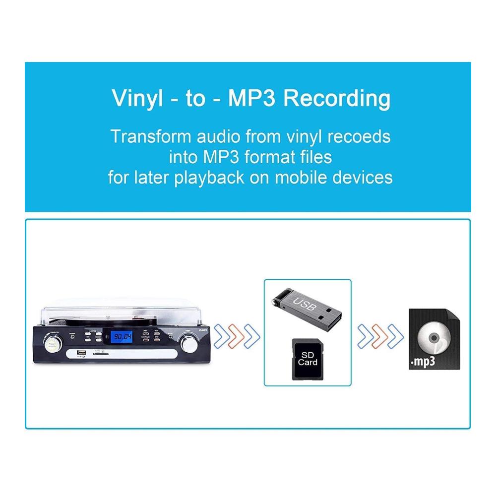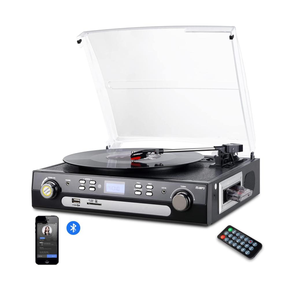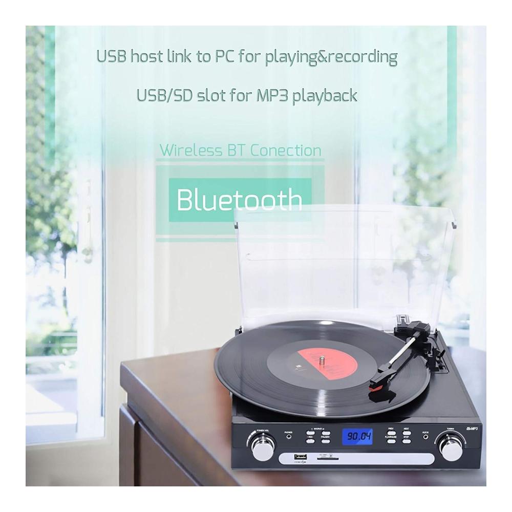 Erleben Sie mit unserem Plattenspieler von DIGITNOW! die perfekte Kombination aus klassischem Vinyl und moderner Technologie. Dank Bluetooth können Sie Signale von verschiedenen Geräten empfangen, während die 3-Gang-Funktion eine flexible Nutzung ermöglicht. Die eingebauten Stereolautsprecher und das LCD-Display sorgen für ein optimales Hörerlebnis. Nutzen Sie die vielseitigen Kodierungsoptionen, um Ihre Musik zu digitalisieren. Mit AM/FM Radio und Aux-In Anschluss bietet dieser Plattenspieler alle Funktionen, die Sie benötigen.