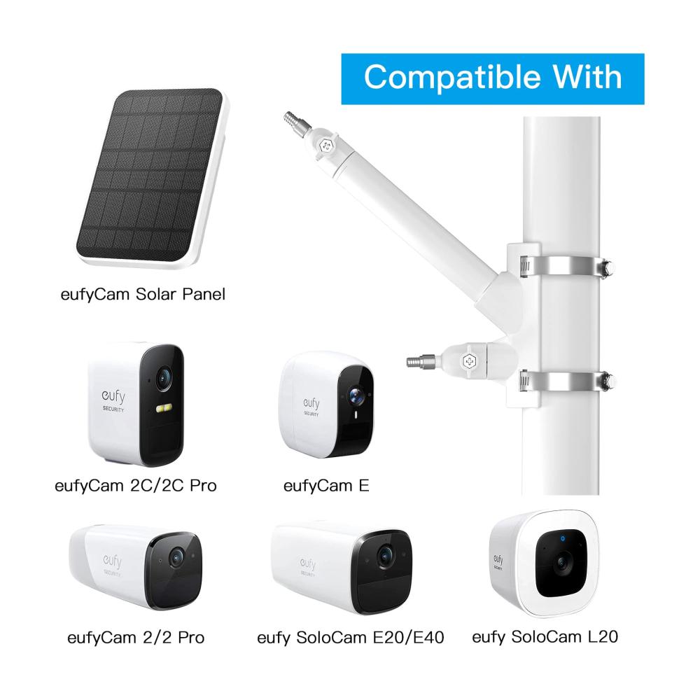 • FLEXIBLE SICHT: Unsere Stangenhalterung lässt sich einfach um 360 Grad drehen und um 90 Grad neigen und ermöglicht die flexible Positionierung Ihres Arlo Solarpanel Eufycam 2c Eufycam2c Pro, Eufycam 1,Eufycam2, Eufycam E and Other Eufycam . Es verfügt über eine starke und sichere Winkelsperre, die es Ihrer Eufycam ermöglicht, in derselben Position zu bleiben.