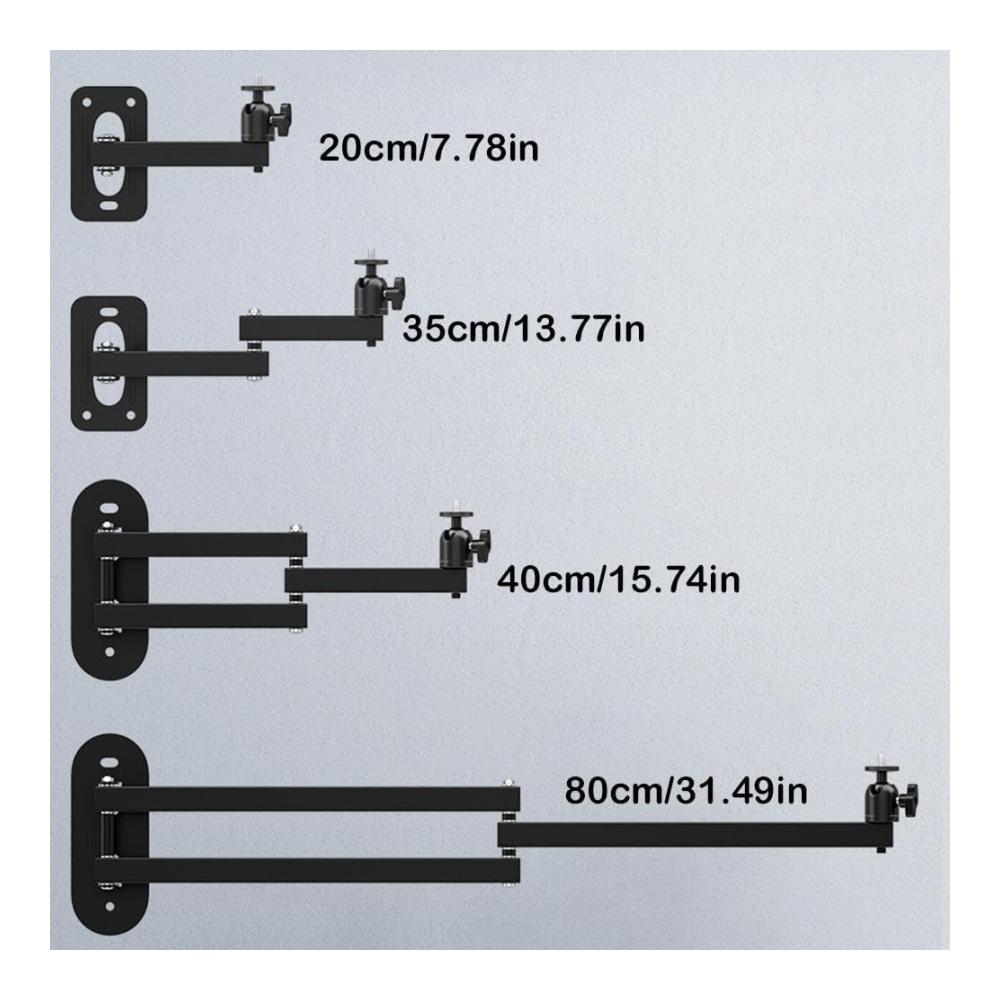 Produktname: wandmontierte Projektorhalterung. Material: Aluminium und Metall. Farbe: Schwarz. Größe: 20 cm, 35 cm, 40 cm, 80 cm. Tragkraft: 3 kg. Im Lieferumfang enthalten: 1 x Projektorhalterung zur Wandmontage. Hinweise: 1. Aufgrund von Licht- und Monitoreinstellungen können die Farben leicht abweichen. 2. Die Maße wurden manuell bestimmt und können daher leicht abweichen. Vielen Dank für Ihr Verständnis! 3,1 mm = 0,039 Zoll.
