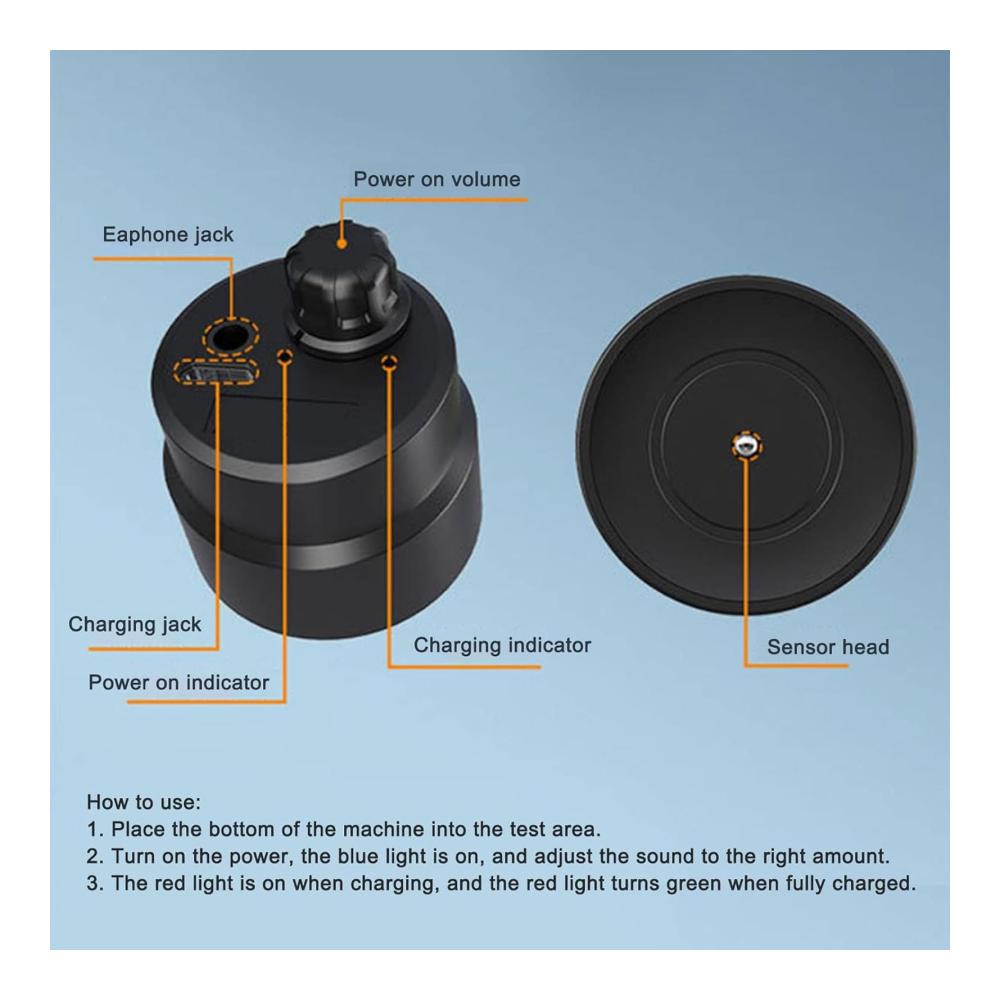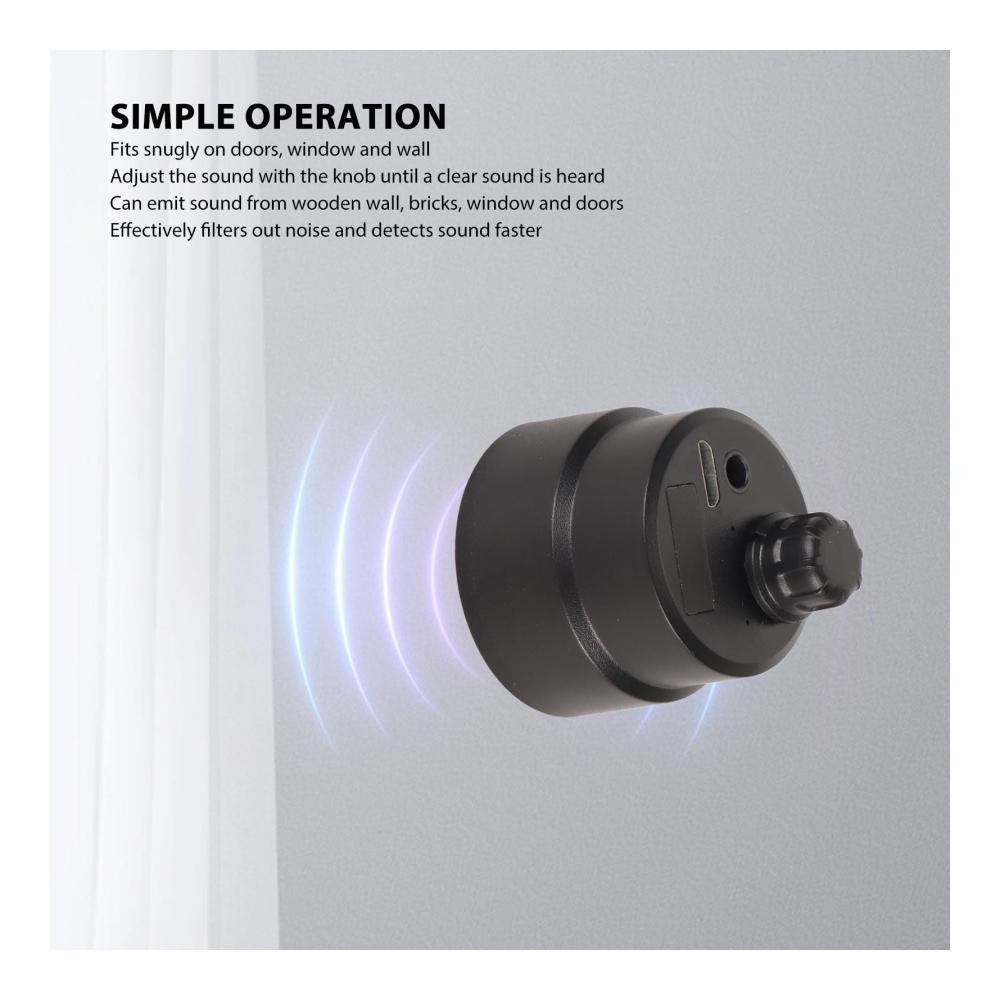 EINFACHE BEDIENUNG: Drücken Sie fest gegen Türen, Fenster und Wände und stellen Sie den Ton mit dem Knopf ein, bis Sie einen klaren Ton hören, der Geräusche von Holzwänden, Ziegeln, Fenstern und Türen abgeben kann, eine effektive Geräuschfilterung und eine schnellere Geräuscherkennung ermöglicht.