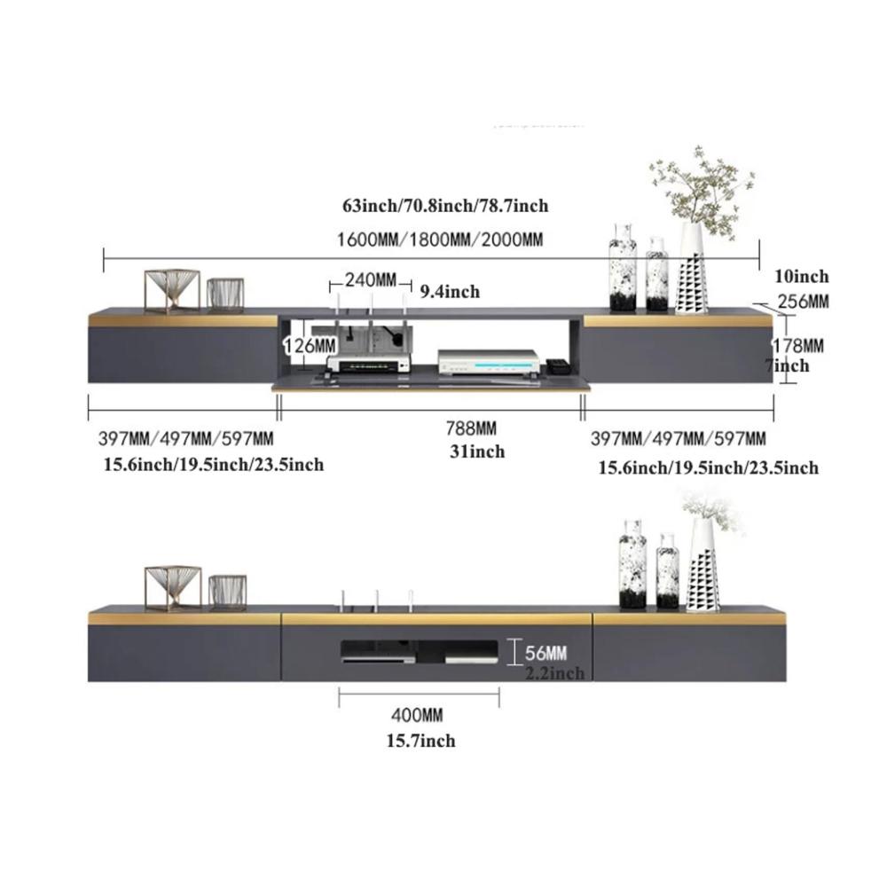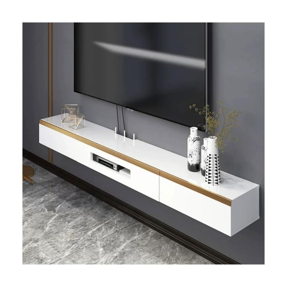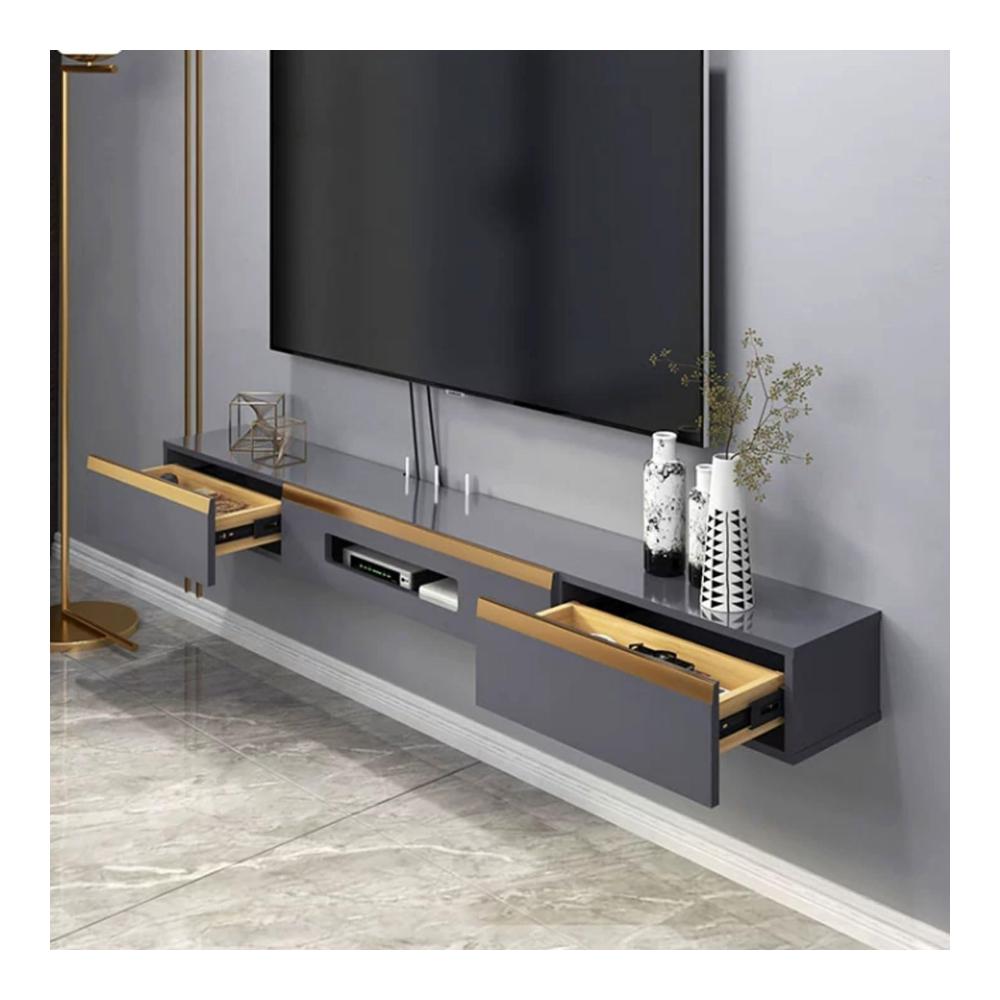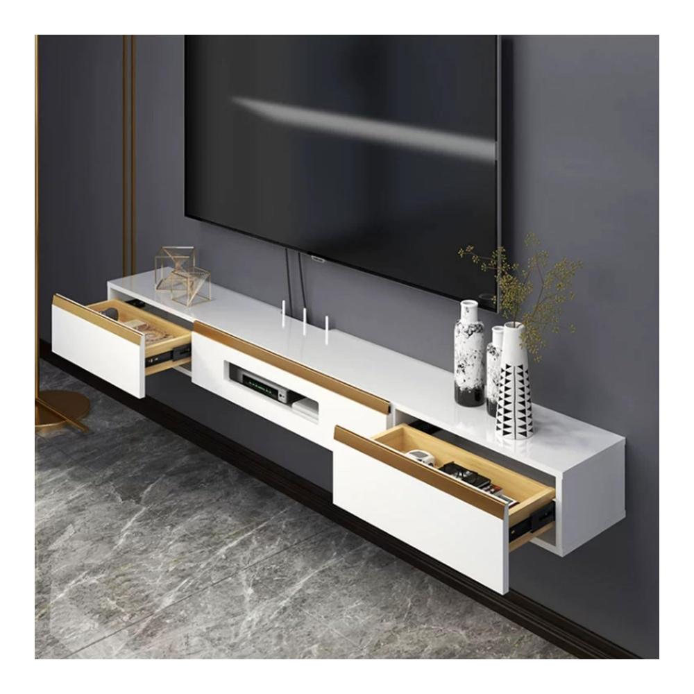 Die Standfüße sind robust und sorgen für eine sichere Befestigung an der Wand, während die TV-Halterungen Flexibilität bei der Positionierung Ihres Fernsehers bieten. Unser schwebender TV-Ständer vereint Funktionalität und Ästhetik und wird zum Mittelpunkt Ihres Entertainment-Bereichs.