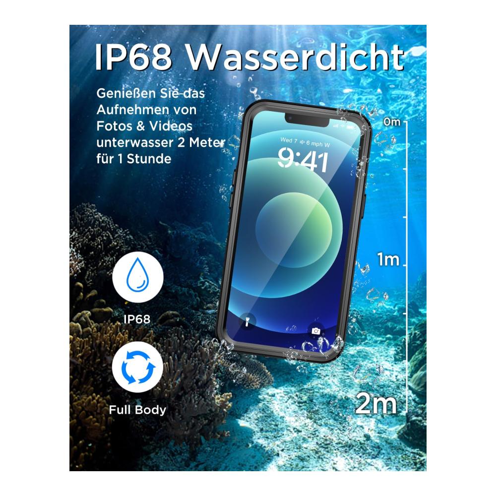 【IP68 Zertifiziert Wasserdicht】Perfekte ganzkörper wasserdichte Hülle, tauchbar bis zu 2M unter Wasser für 1 Stunde. Unterstützt Unterwasserfotografie, ausgezeichneter Schutz für Schwimmen, Schnorcheln, Surfen und mehr Unterwasser-/Outdoor-Aktivitäten. NUR mit iPhone 12 (6,1&34;) kompatibel!