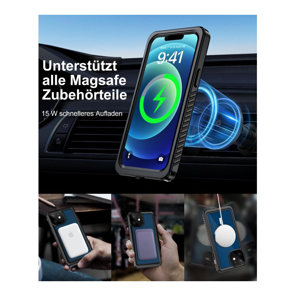 【Stärkere Magnetkraft & Kompatibel mit MagSafe-Zubehör】Diese iPhone 12 wasserdichte MagSafe Hülle mit eingebauten 17 starke N52-Magneten und einem zusätzlichen Magnet Ring ermöglicht sicheres & schnelles kabelloses Laden. Super magnetische Adsorptionskraft bis zu 1,900g (4X stärker), kann fest mit allen MagSafe-Zubehörteilen wie kabellosem Ladegerät, Autohalterung, Brieftasche, Akkupack und mehr verbunden werden.