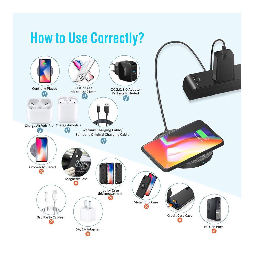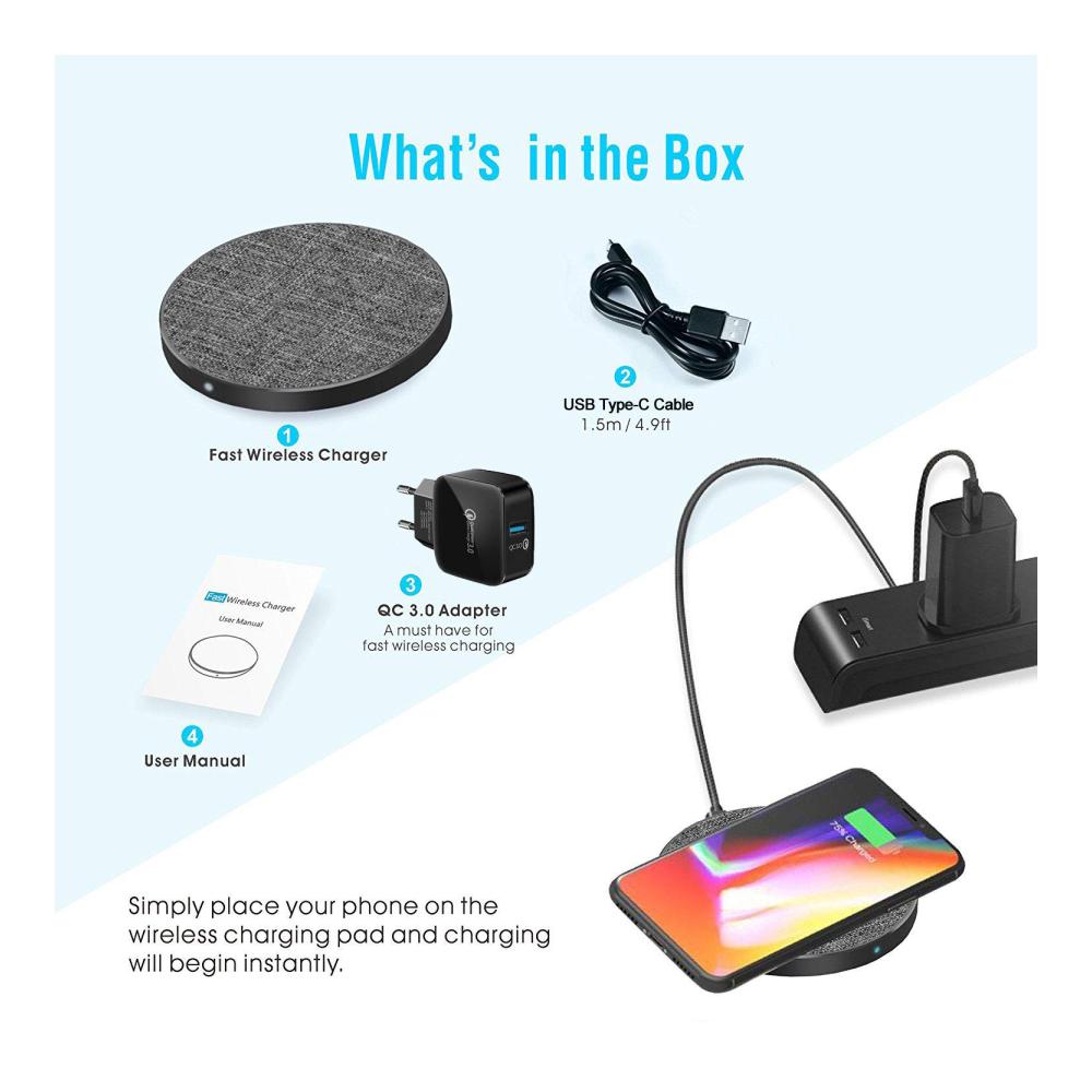 Wefunix 15W | 10W | 7.5W Qi Ladestation Fast Wireless Charger mit QC 3.0 Adapter 18W 1.5m USB C Ladekabel – MC30