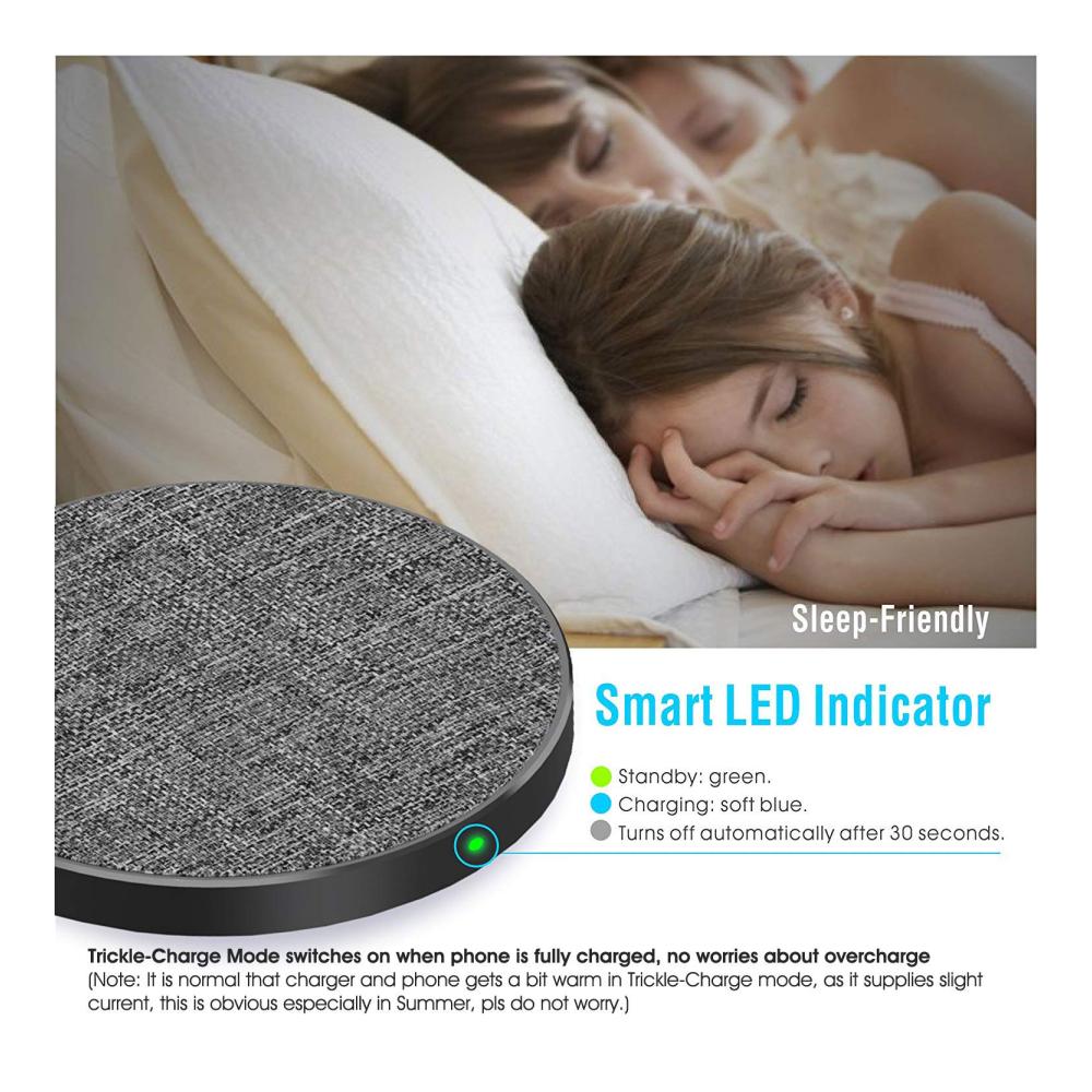 【Ungestört Schlafen mit Intelligenter LED-Anzeige】Das LED-Licht erlischt nach 30 Sekunden, so können Sie jederzeit ungestört schlafen. Sanftes blaues Licht signalisiert Ladevorgang. Das LED-Licht blinkt schnell grün, um Sie daran zu erinnern, dass der Ladevorgang nicht ordnungsgemäß erfolgt. ※Bitte richten Sie Ihr Telefon an der zentralen Position des Ladebereichs aus, da sonst das kabellose Laden fehlschlagen oder weniger effizient sein kann.