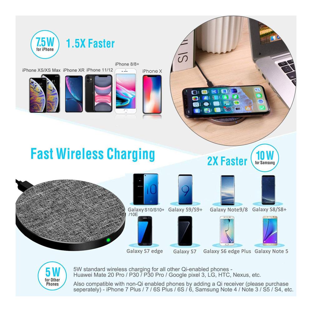 【15W/10W/7,5W Schnelle Drahtlose Aufladung】Bis zu zweimal schnellere Ladegeschwindigkeit als kabellose 5W-Standardladegeräte. 15W kabelloses Schnellladen für LG G8; 7,5W für iPhone 15/15 Plus/15 Pro/15 Pro Max/14/14 Plus/13/13 Pro Max/12/12 Mini/12 Pro Max/11/11 Pro Max/XS/XS Max/XR/X/8/SE; 10W für Samsung Z Flip5/4/3/Fold5/4/3/S23/S23 Ultra/S22/S21/S20/S10/S10 /S10E/S9/S9 /S8/S8 /S7/Note 10/9/8,Huawei P30 Pro/P40 Pro; 5W für andere Qi-fähige Handy.