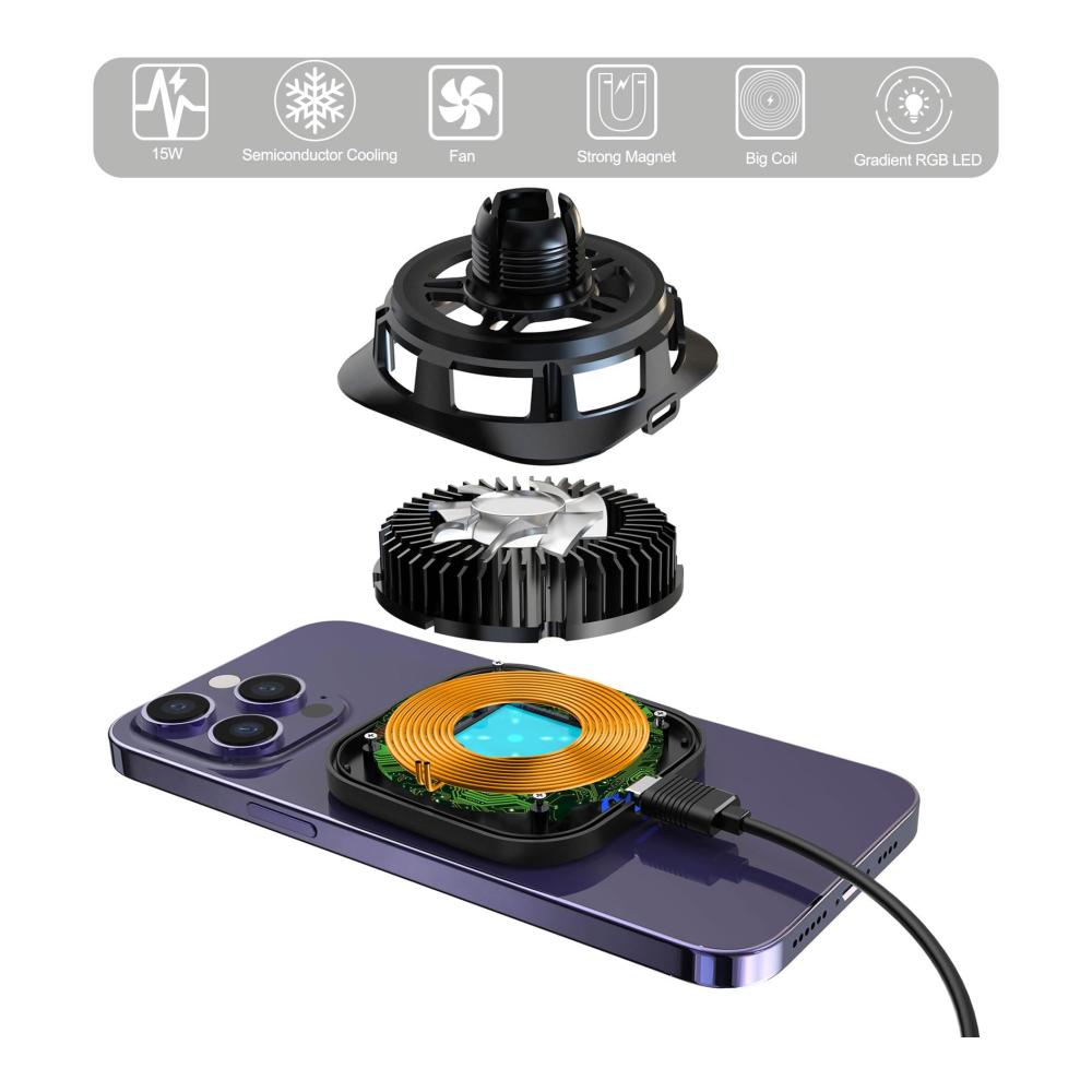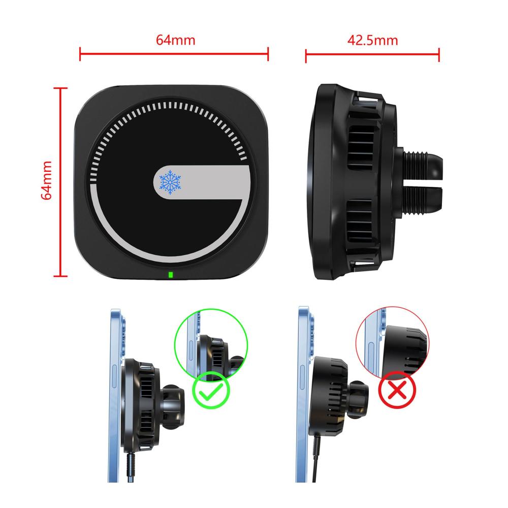 Das Wefunix Fast Wireless Charger Auto Magnetic kombiniert Funktionalität und Komfort für Ihr Fahrerlebnis. Mit starken Magneten und einem verstellbaren Kugelgelenk bietet es Ihnen eine sichere Halterung für Ihr iPhone 15, 14, 13 oder 12 während der Fahrt. Die eingebaute Kühlplatte und der Lüfter halten Ihr Telefon und das Ladegerät kühl, während Sie drahtlos aufladen, und die Magic Gradient RGB LED sorgt für eine stilvolle Beleuchtung während des Ladevorgangs, ohne ablenkend zu wirken. Zudem bietet es mehrere Schutzmaßnahmen, um Ihr Telefon vor Überladung, Überhitzung und anderen Gefahren zu schützen. Mit dem mitgelieferten QC 3.0-Autoadapter und dem universellen Belüftungsclip ist dieses Ladegerät eine ideale Ergänzung für Ihr Auto. Genießen Sie das sichere und bequeme drahtlose Laden unterwegs.