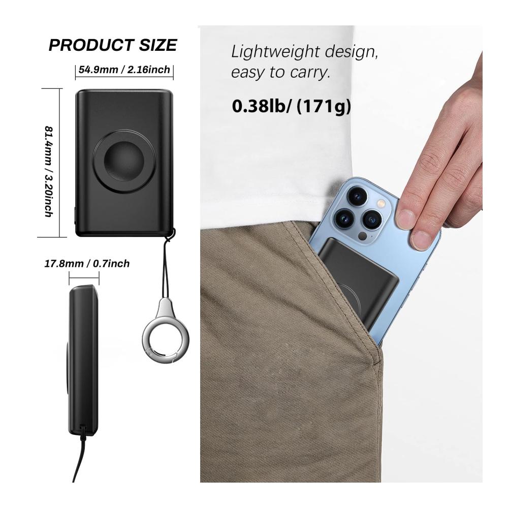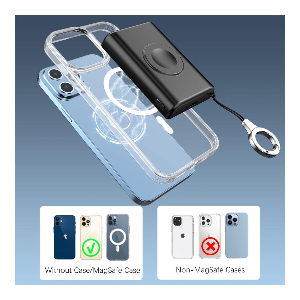 Perfekte Größe und geringes Gewicht: Das Designkonzept dieses Produkts besteht darin, dass Menschen nicht mehr mit einer großen und sperrigen Powerbank einkaufen oder arbeiten müssen. Wenn Ihre elektronischen Geräte aufgeladen werden müssen, ist dieses tragbare Ladegerät Ihr bester Begleiter kann Ihrem iPhone der 12/13/14-Serie eine Notladung von 40-67% geben. Es wiegt nur 105 Gramm und ist perfekt, um herumgetragen zu werden, ohne Sie zu beschweren.
