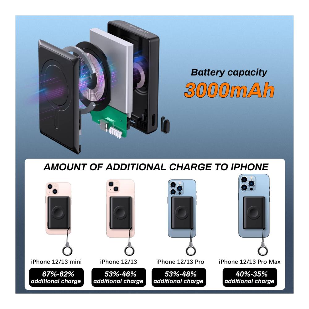 3000 mAh magnetischer Akku für iPhone 12/13 Serie, für Apple Watch Ladegerät tragbar mit Schlüsselanhänger
