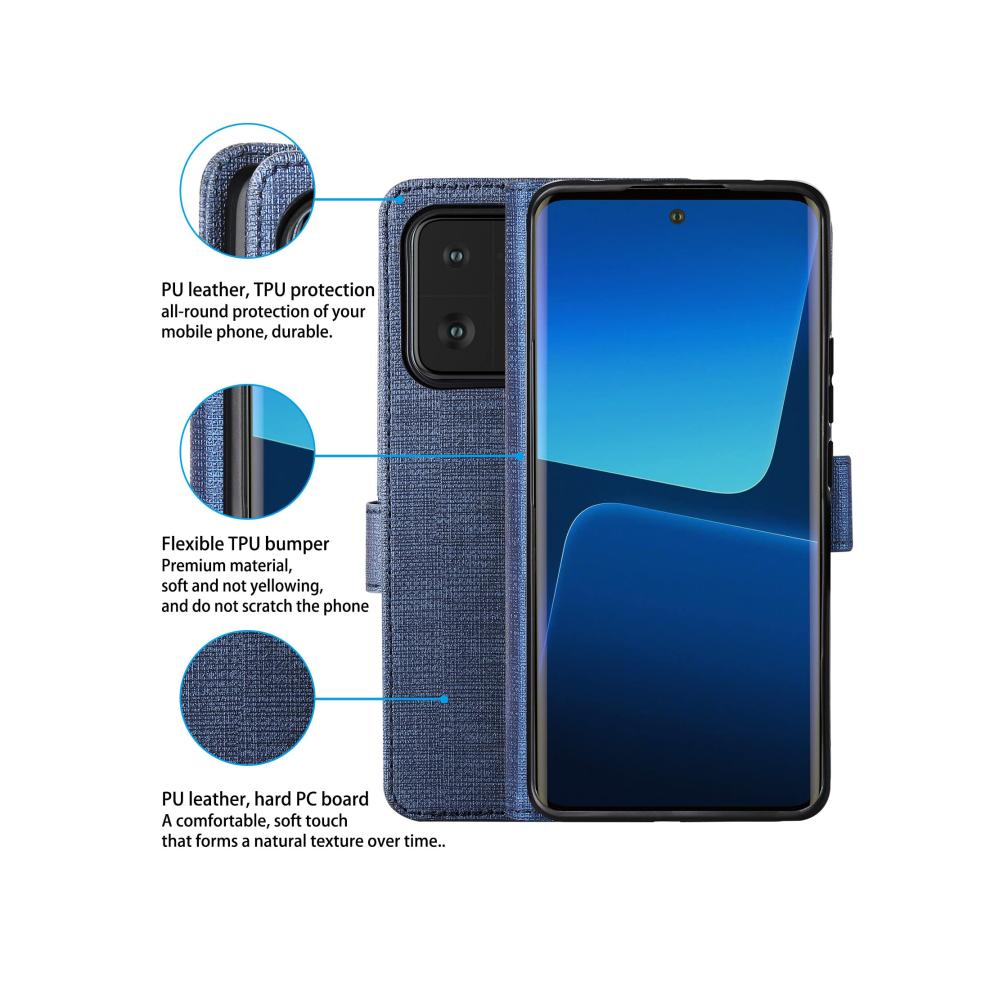 Xiaomi 13 Pro Klapphülle 2023 – Blaue Brieftaschen-Hülle aus Premium Leder mit Standfunktion, Kartenfach & Magnetverschluss – Stoßfestes TPU Bumper