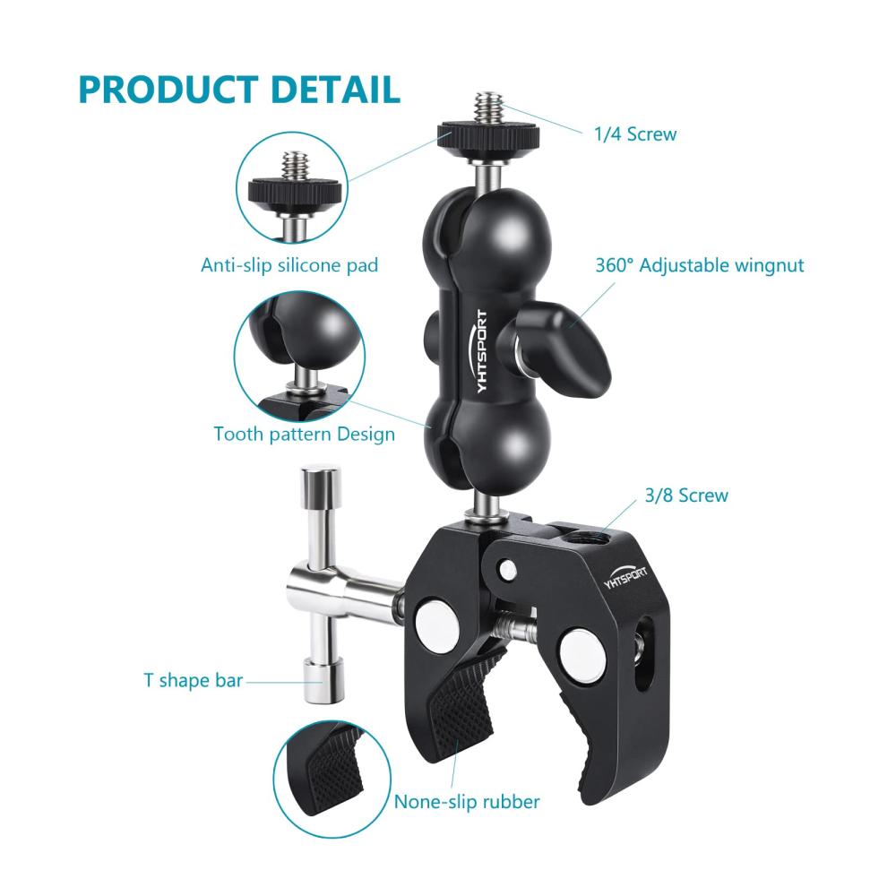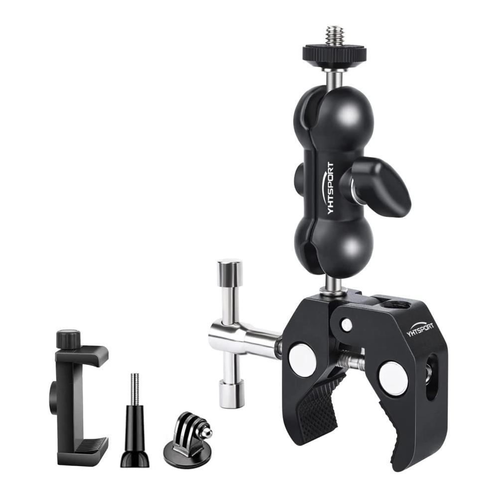 • Die YHTSPORT Käfig-Halterungen bieten vielseitige Möglichkeiten für Ihre Befestigungsanforderungen. Die robuste Super Clamp ermöglicht eine maximale Belastung von 1,5 kg und ist perfekt für Kameras, Mobiltelefone und mehr geeignet. Dank des 360°-Doppelkugelkopfs können Sie den Aufnahmewinkel frei einstellen. Die hochwertige Aluminiumlegierung und die rutschfeste Gummiauflage sorgen für Stabilität und Schutz. Im Lieferumfang enthalten sind eine Super Clamp, ein Action-Kameraadapter und ein Handyclip. Ideal für Fotografen und Videografen.