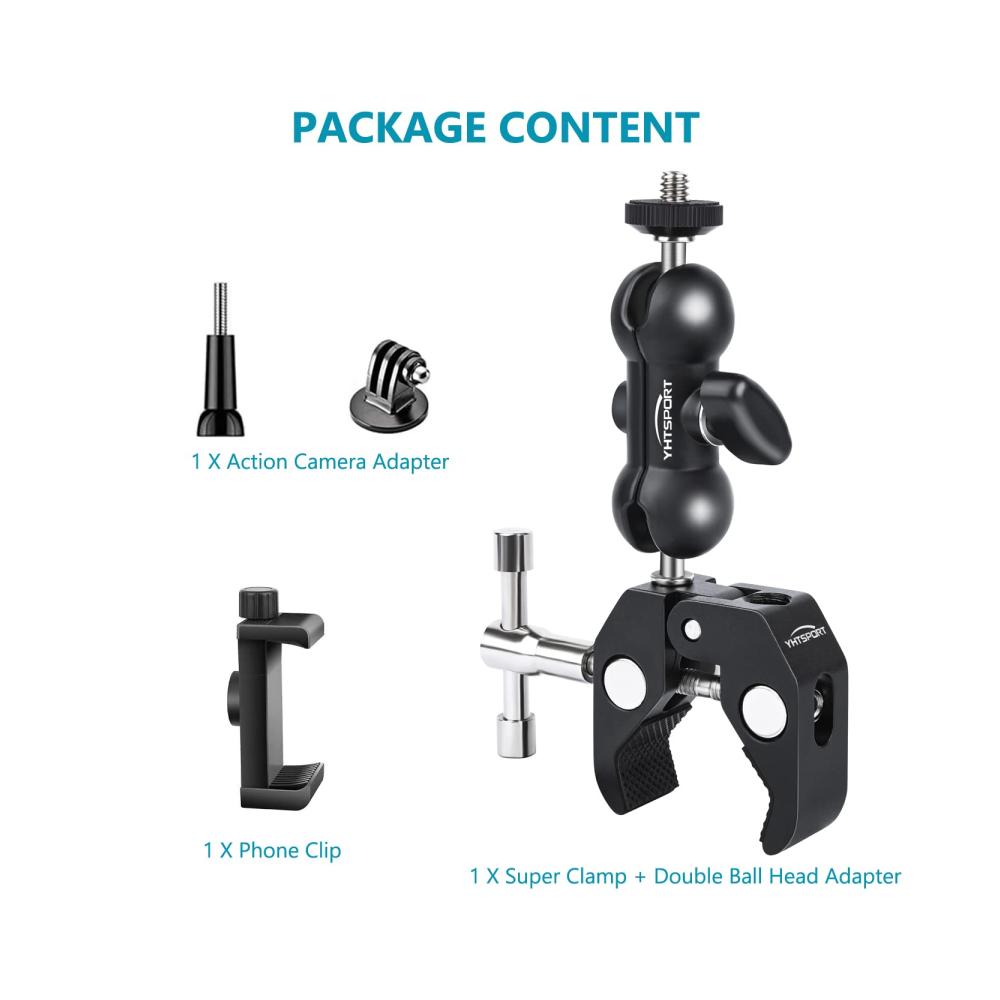 • 【PRODUKTLISTE】1x Super Clamp, 1x Action Camera Adapter, 1x Handyclip.