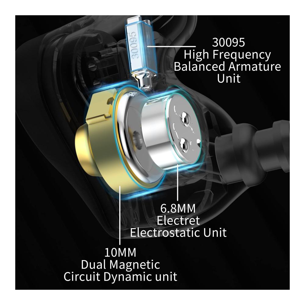 【Hochleistungs】1 x Hochfrequenz-symmetrische Armaturen-Einheit, 1 x 6,8 mm Elektretelektrostatische Einheit, 1 x 10 mm Dual-Magnetkreis-Dynamikeinheit. Drei Arten von Hochleistungs-Schallerzeugungseinheiten sind integriert, wodurch der Klang gleichmäßiger wird und der Klang der Natur blüht.