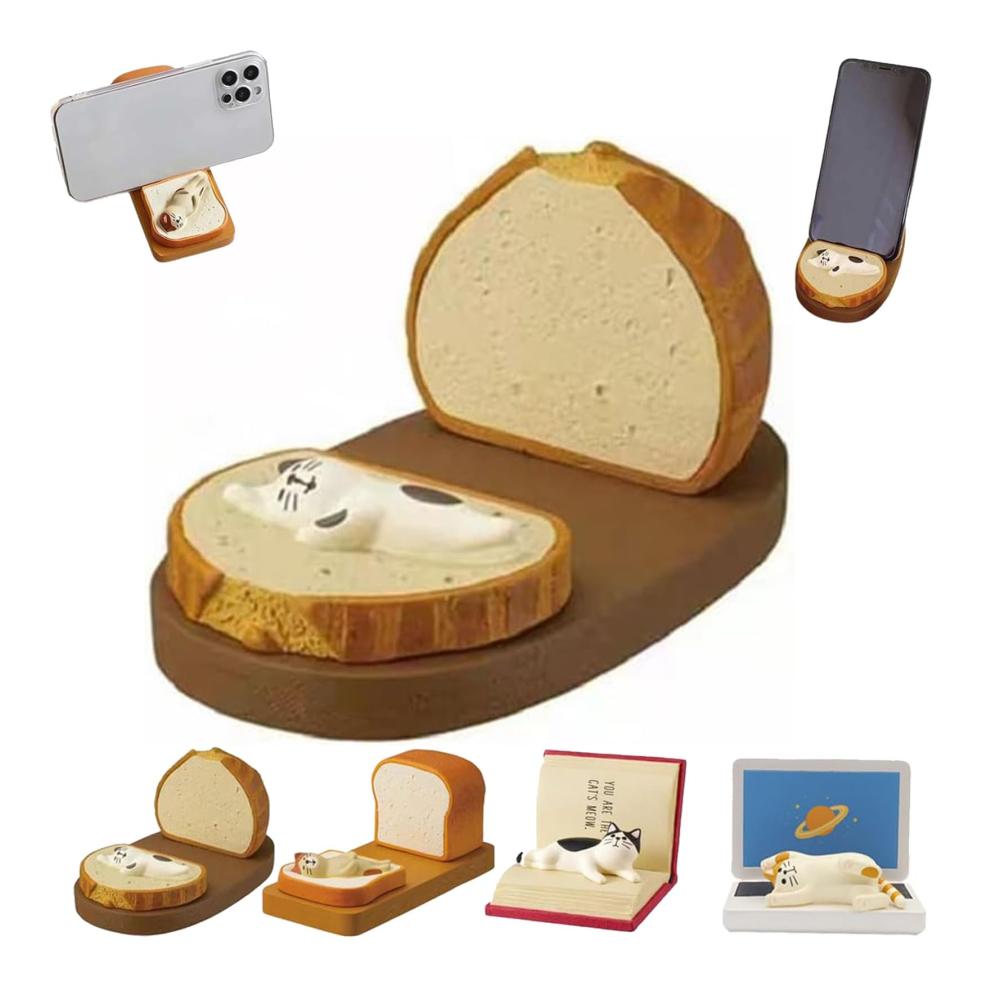 Willkommen in unserem Shop! Handy Ständer | Katze Liegend auf Brot, Harz Handy Halter Tiere Verzierungen Ständer, Cartoon Katze Desktop Handy Halter, Schreibtisch Home Geburtstagsgeschenk Verzierungen, Schreibtisch Home Dekor Geschenke.