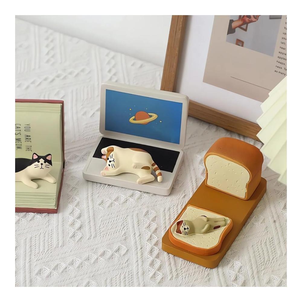 😾🐾【Unique Design】Immerse yourself in the charm of cute cats posing in various positions. From lounging on books to relaxing on toast or puffs, the cartoon animal desktop cell phone stand adds a playful touch to your space, bringing joy and laughter.