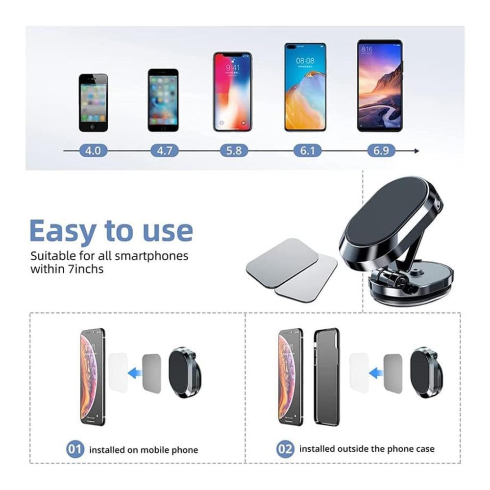 Zoxdoly Handyhalter, Metall Faltbare Auto Handyhalterung, Goodnessk Legierung Faltbare Magnetische Auto Handyhalterung, 720° Drehung Magnetische Handyhalterung für Auto Merkmal: 1. Mini kompakter, faltbarer starker Magnetständer. 2. 360 ° Upgraded Folding Car Phone Holder, Stable and Non-Slip 3. 120 mal stärkere Saugkraft, geeignet für mehrere Szenarien. 4. Kompakt und stabil, mit starker Saugkraft und freier Sicht. 5. 6 leistungsstarke Magnete, stabil und rutschfest, nicht leicht abzufallen. Spezifikation: Produktname: Zoxdoly Handyhalterung Farbe: Schwarz, Silber Hauptmaterial: Zinklegierung ABS Silikon Hauptprozess: Druckguss, S/N positive und negative Pole bilden ein geschlossenes Magnetfeld Produktgewicht: Nettogewicht 67 g, Bruttogewicht 95 g Produktgröße: 50 x 28 x 17 mm. Paket beinhaltet: 1/2 x Zoxdoly Handyhalterung. Über After-Sales-Service: Wenn Sie beim Kauf und bei der Verwendung unserer Produkte auf Probleme stoßen, kontaktieren Sie uns bitte rechtzeitig, wir werden Ihnen 24 Stunden dienen.